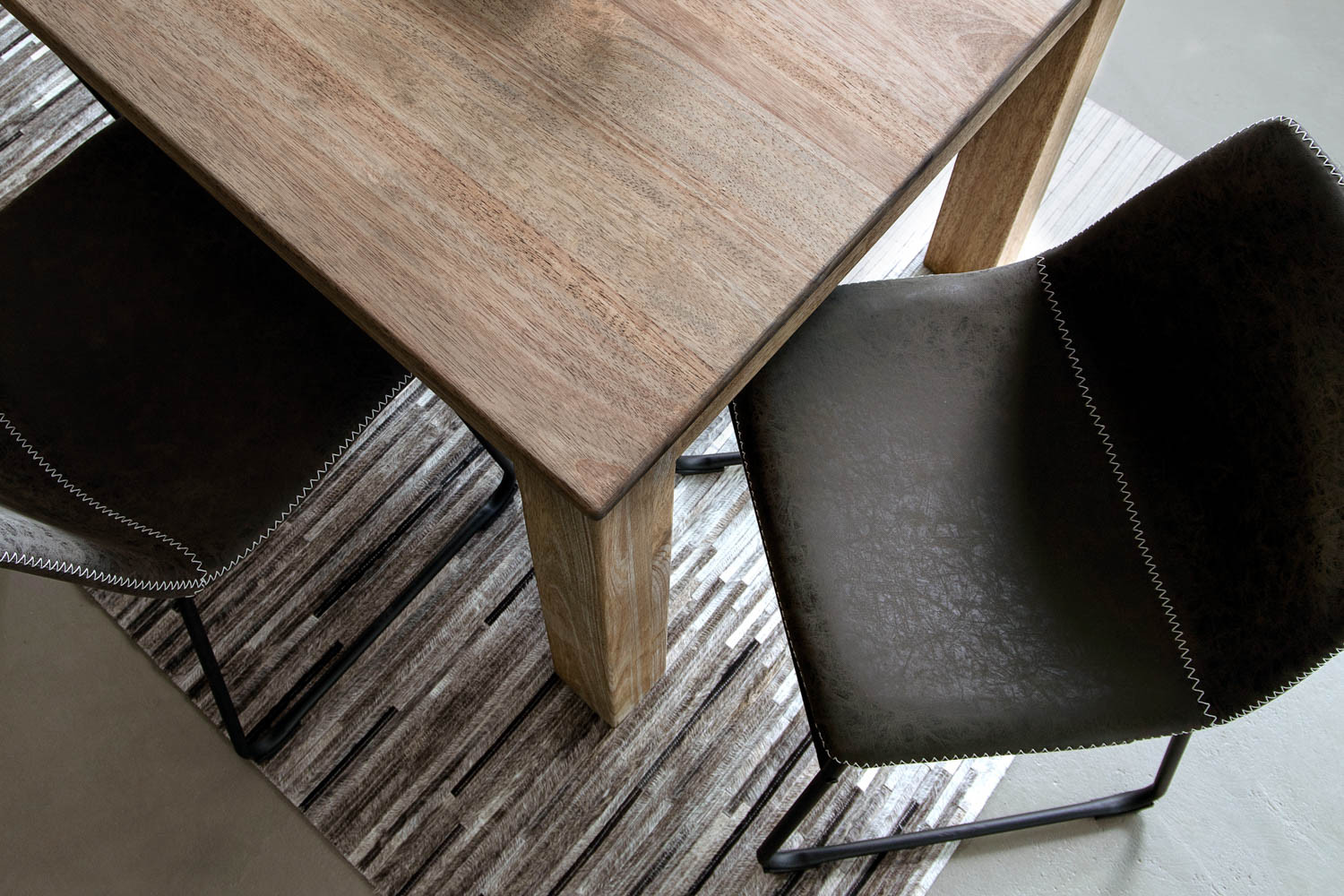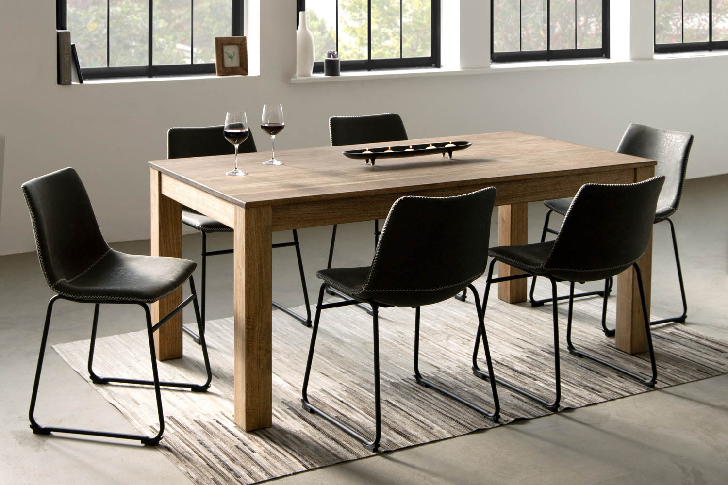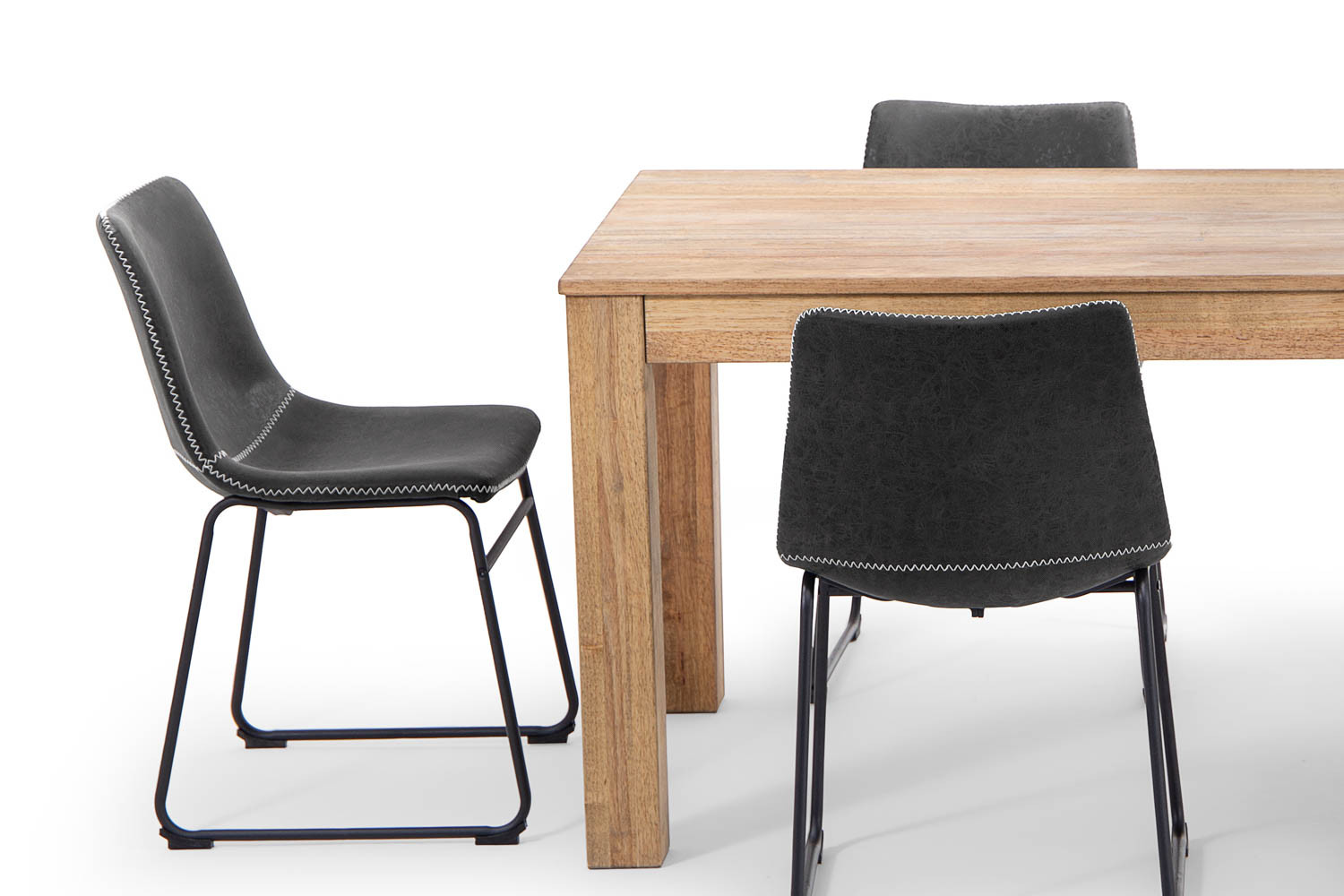 This contemporary look dining set means that you and your family can enjoy a versatile, comfortable, and yet aesthetically pleasing dining experience. The stylish chairs are available in storm grey, ginger, camel and ebony.