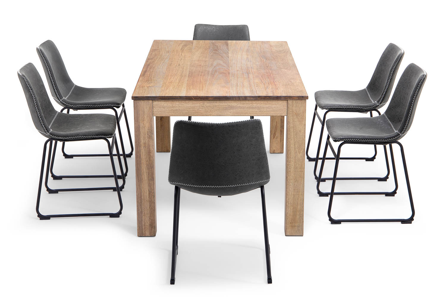 This contemporary dining arrangement is ideal for an everyday dining experience. The sustainable rubberwood used to craft the Montreal Dining Table produces a warm and welcoming feel which pairs perfectly with the six versatile chairs.