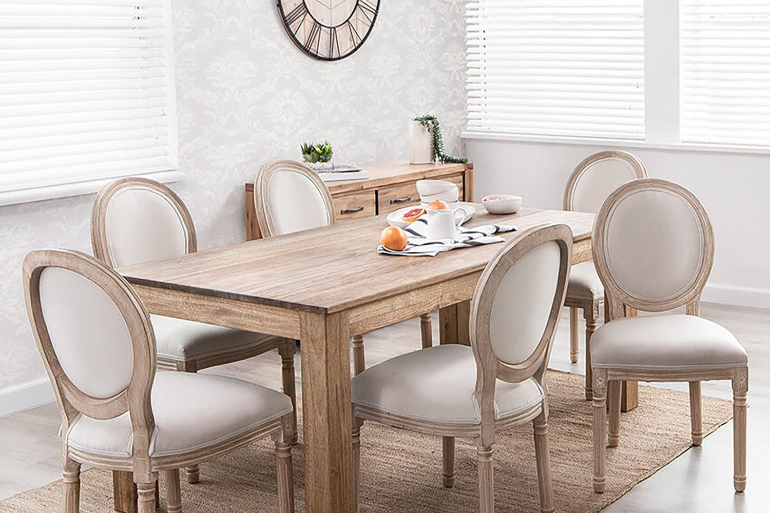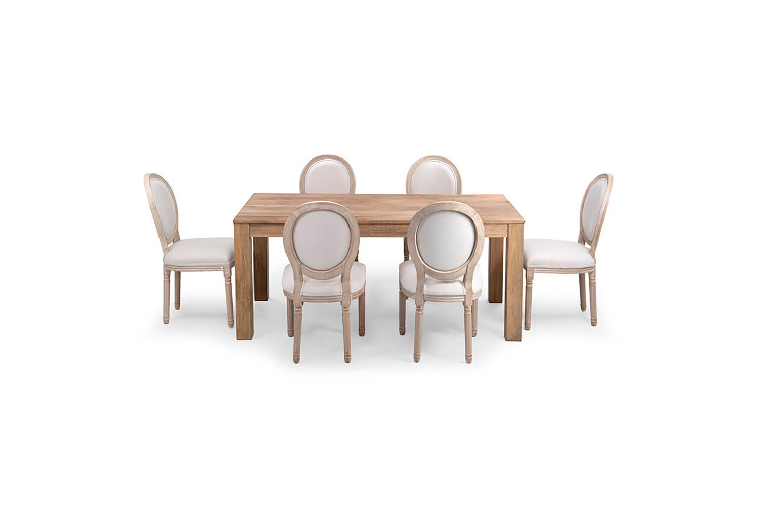 The combination of our Montreal Dining table & 6 Olivia Dining Chairs brings a uniquely classical centre point to your Dining room. crafted from sustainable rubberwood, the Montreal Dining Table produces a welcoming dining experience while the classic French country style Olivia Dining Chair, with its solid rubberwood frame & medallion back, is the epitome of old-world elegance.