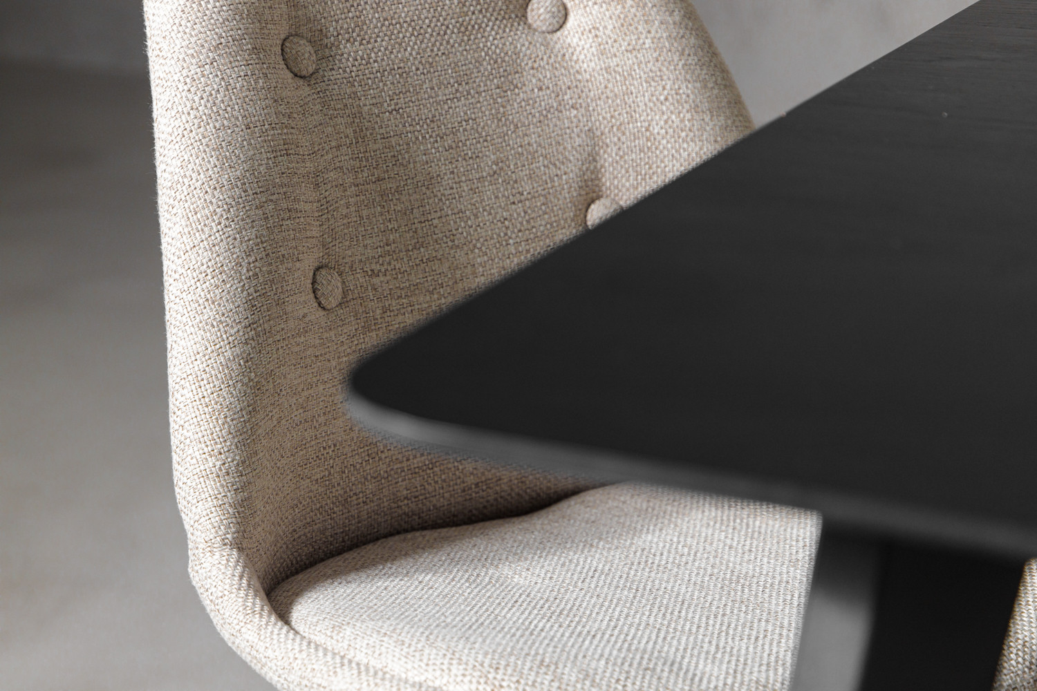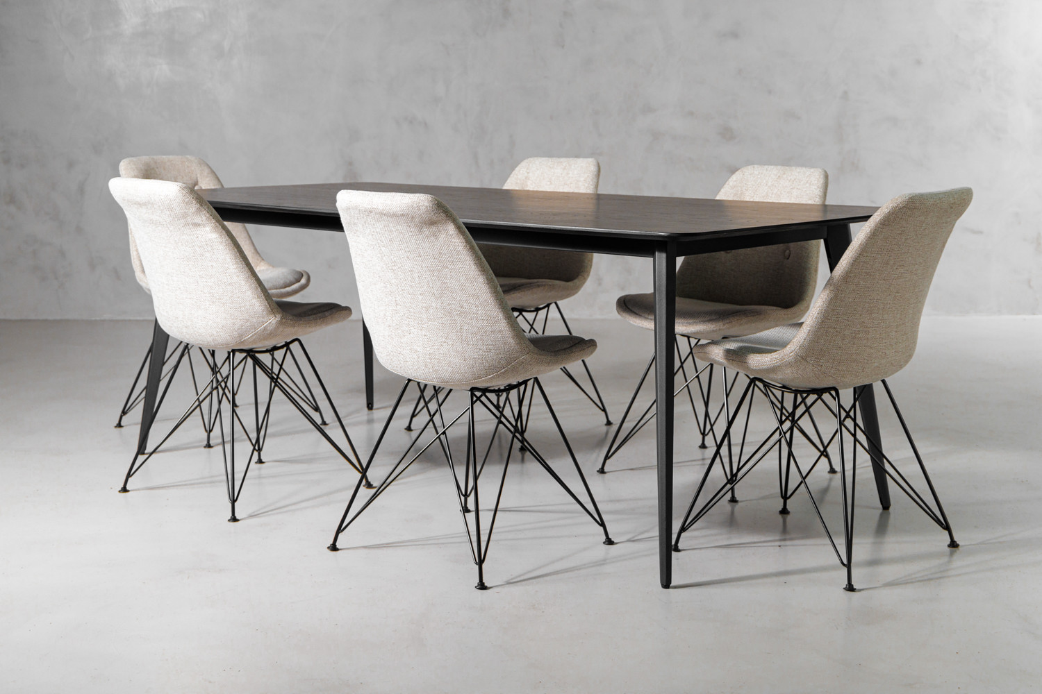 The exquisite Raven Dining Table and Enzo Dining Chair create a dining experience where sophistication meets comfort. Crafted with utmost care, this set exudes timeless elegance, effortlessly elevating any space. The sleek design of the Raven Dining Table invites cherished moments shared over scrumptious meals. Paired with the Enzo Dining chair, boasting plush cushioning and graceful curves, comfort reigns supreme.