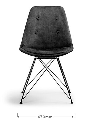The table is paired with 6 Enzo dining chairs inspired by the classic Eames chair, featuring steel Eiffel legs and upholstered in velvet with a distinctive weathered look and buttoned detail on the chair back. The combination of neutral tones, mild rustic finishes and a touch of vintage class gives this set a character of its own that’s sure to be a highlight of any modern home.