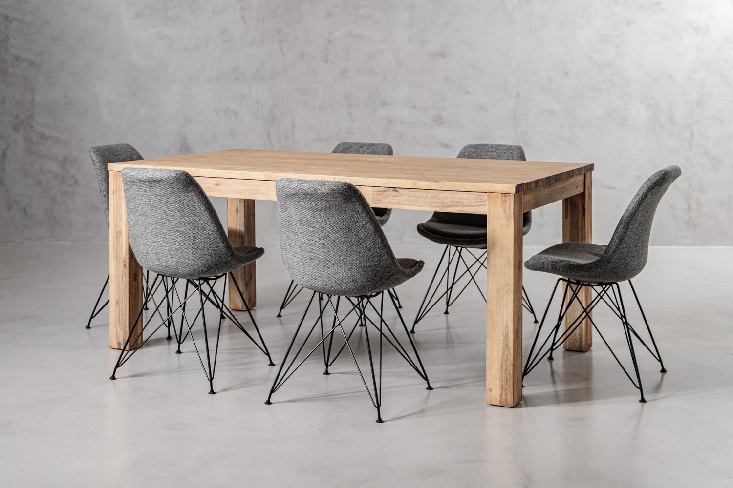 The Vancouver Enzo Dining Set boasts a robust 2.4m dining table built from solid Acacia wood - a high-density hardwood known for its durability – which is sure to remain the centre of your dining space for decades to come. Wire brushing gives this piece a beautifully natural, slightly rustic finish.
