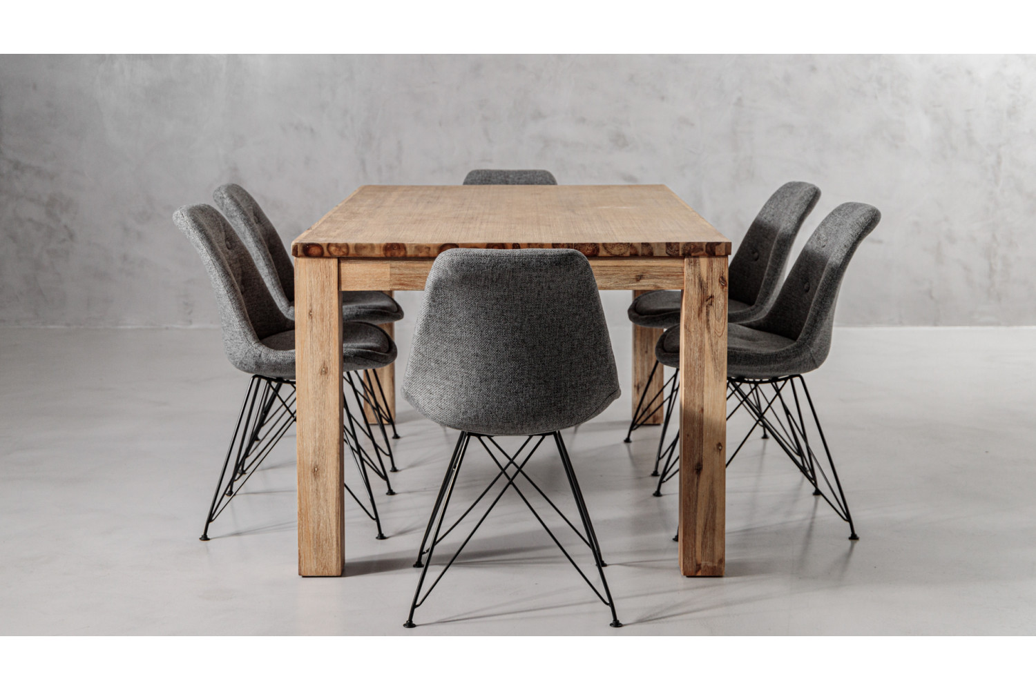 The Vancouver Enzo Dining Set boasts a robust 2.4m dining table built from solid Acacia wood - a high-density hardwood known for its durability – which is sure to remain the centre of your dining space for decades to come. Wire brushing gives this piece a beautifully natural, slightly rustic finish.