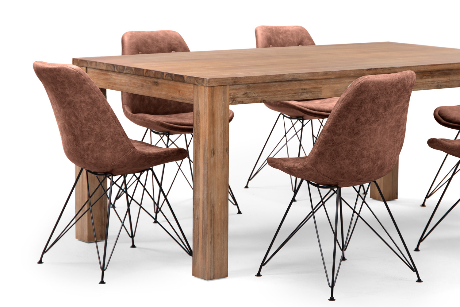 The Vancouver Enzo Dining Set boasts a robust 1.6m dining table built from solid Acacia wood - a high density hardwood known for its durability – which is sure to remain the centre of your dining space for decades to come. Wire brushing gives this piece a beautifully natural, slightly rustic finish.