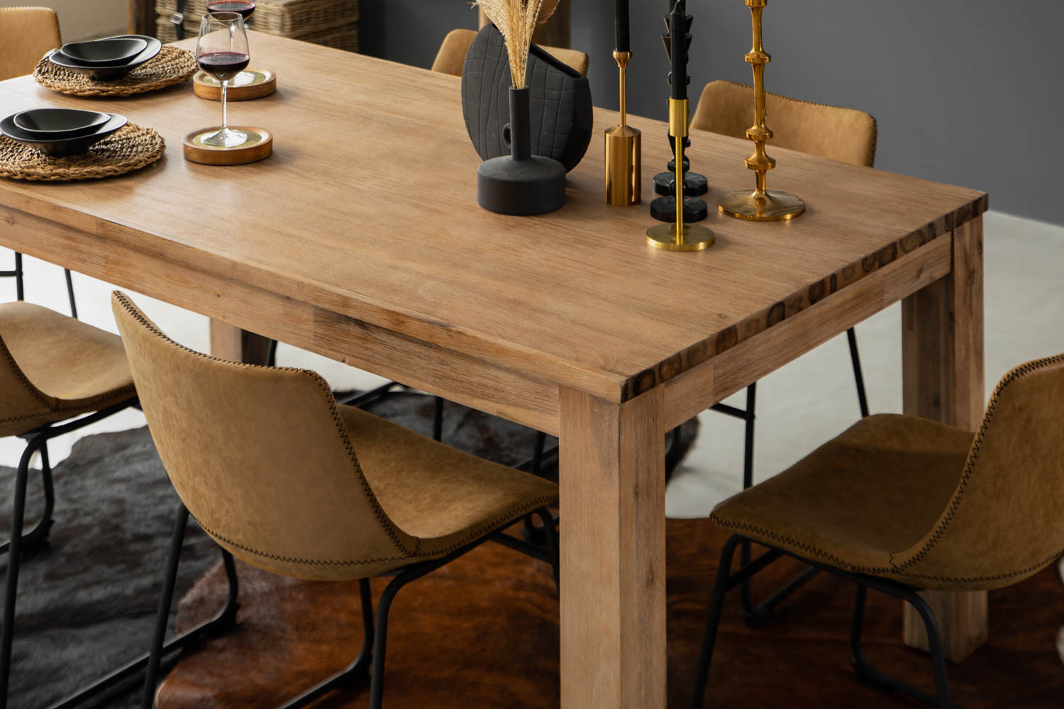 - Wire brushed table for a slightly rustic, matte finish