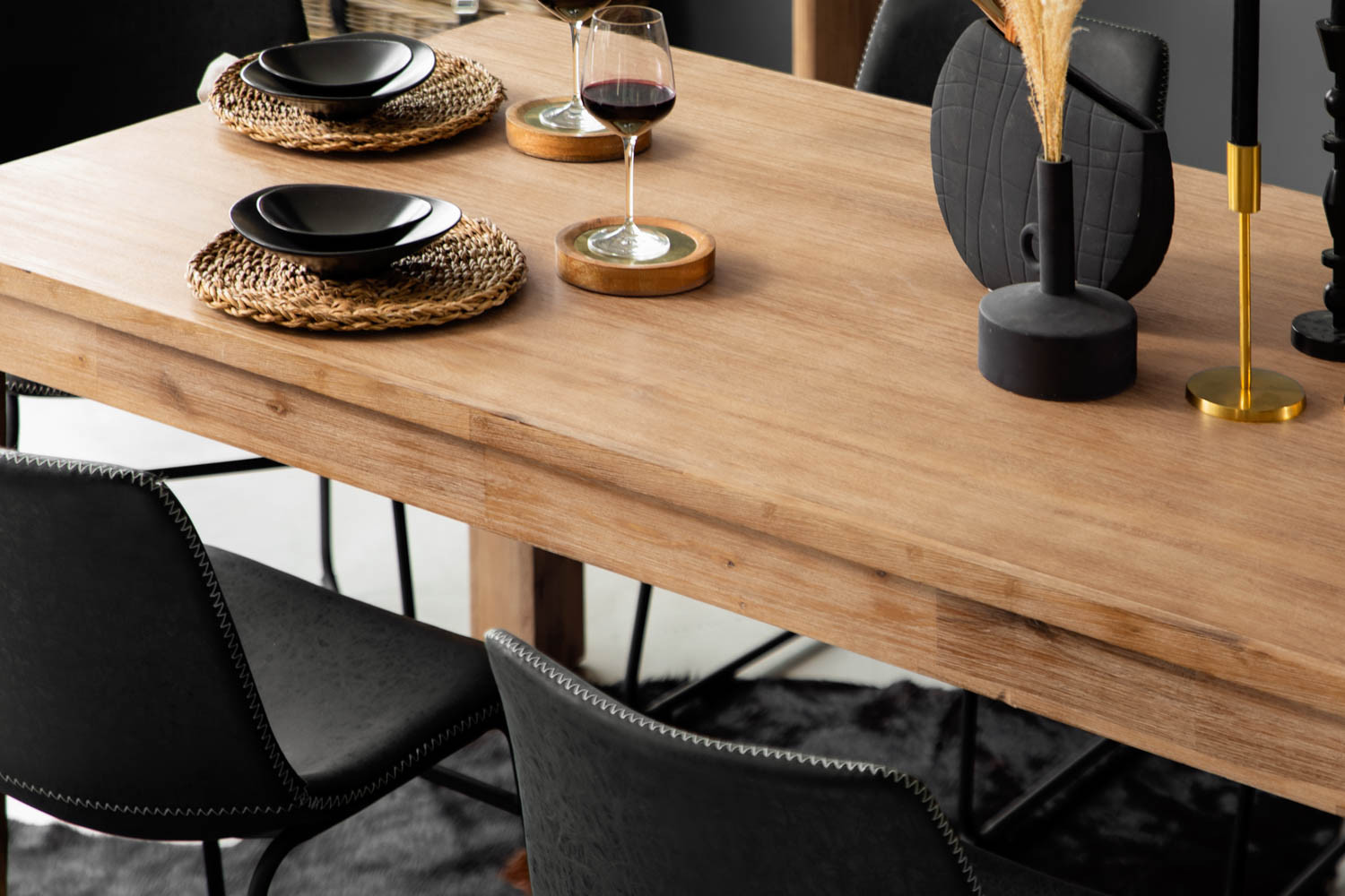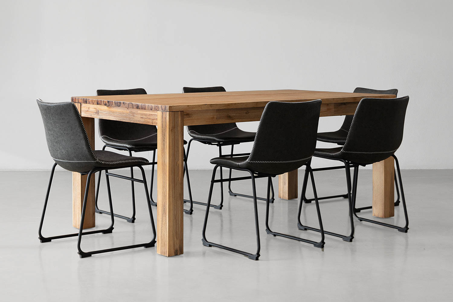 The Vancouver Halo Dining Set boasts a robust 1.8m dining table built from solid Acacia wood - a high-density hardwood known for its durability – which is sure to remain the centre of your dining space for decades to come. Wire brushing gives this piece a beautifully natural, slightly rustic finish.