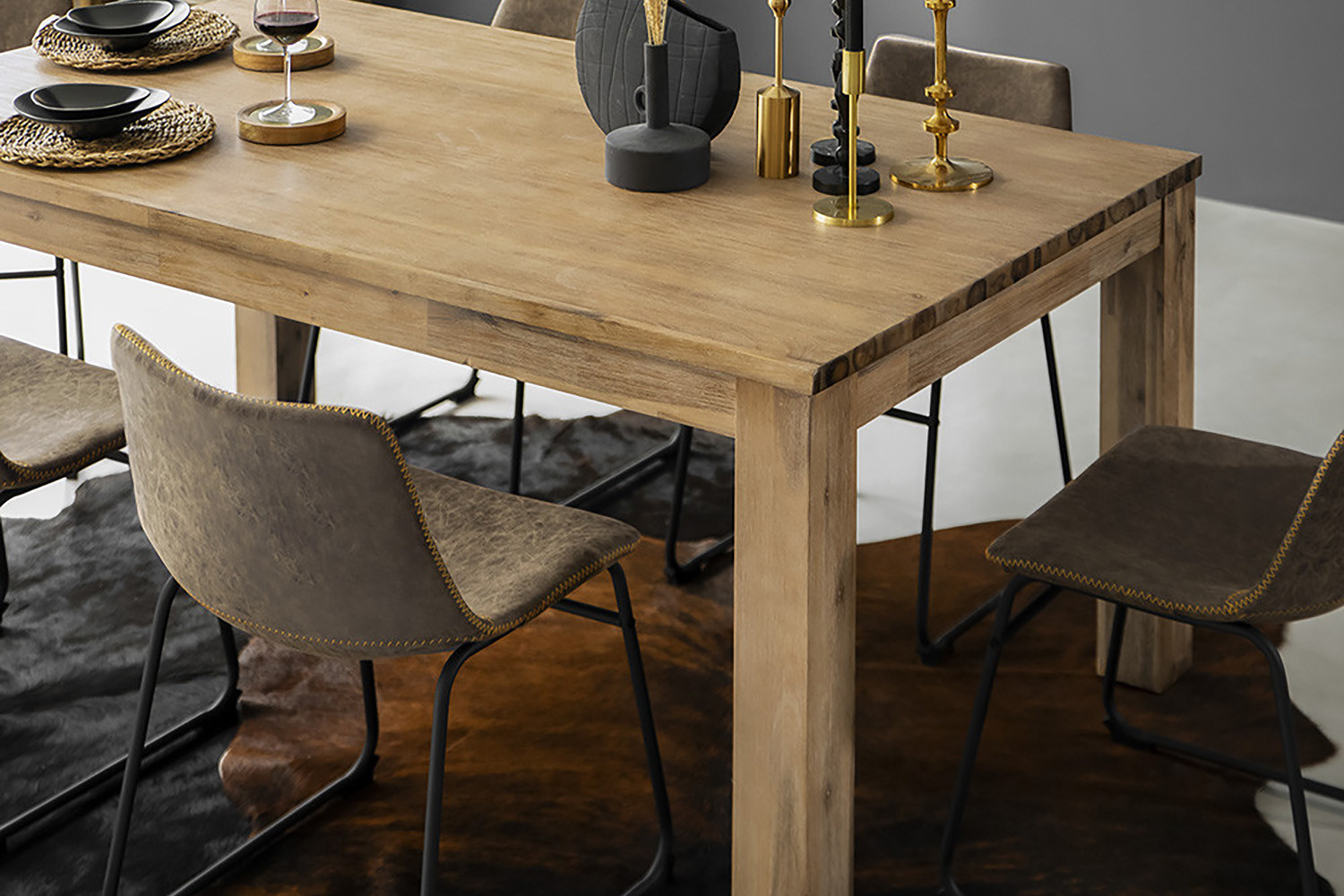 - Wire brushed table for a slightly rustic, matte finish