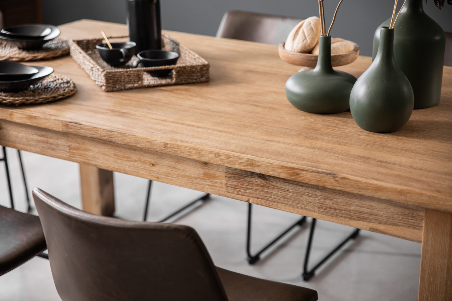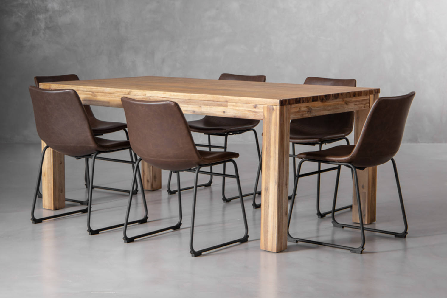 Built from solid Acacia wood, a high-density hardwood known for its durability, the Vancouver dining table promises to remain the centre of your dining space for decades to come. The wire brush technique works beautifully to bring out the unique grain of this wood while giving it a slightly weathered look that will hide any accidental scratches.