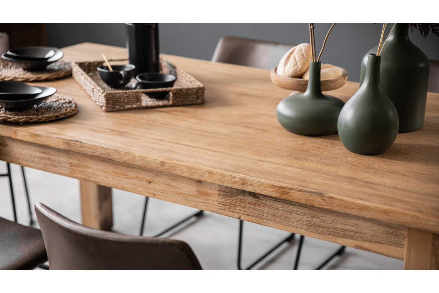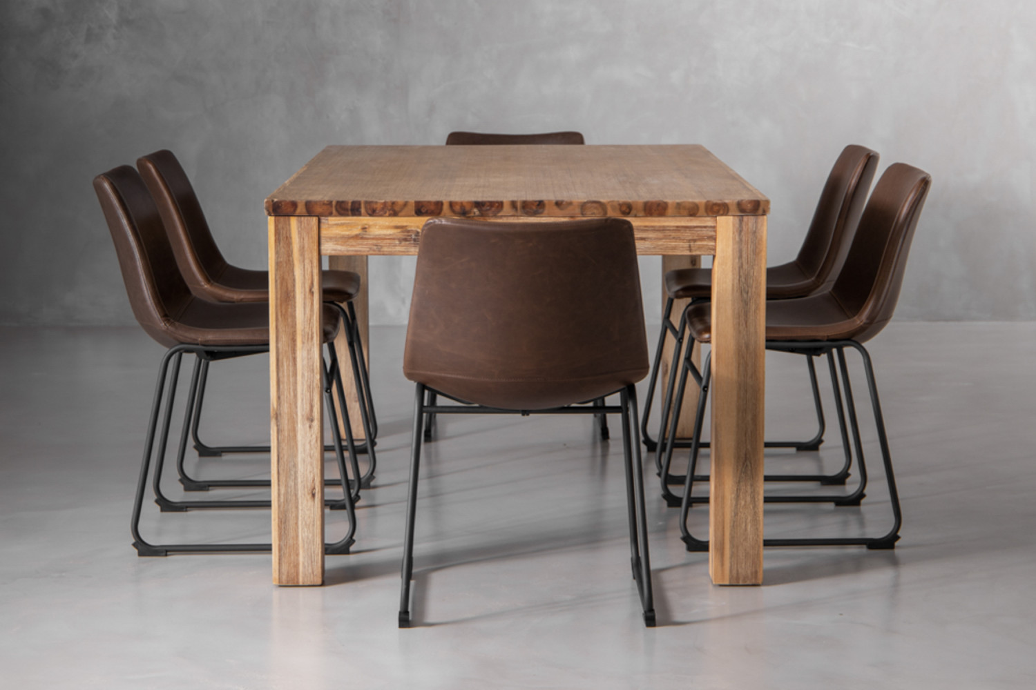 Built from solid Acacia wood, a high-density hardwood known for its durability, the Vancouver dining table promises to remain the centre of your dining space for decades to come. The wire brush technique works beautifully to bring out the unique grain of this wood while giving it a slightly weathered look that will hide any accidental scratches.