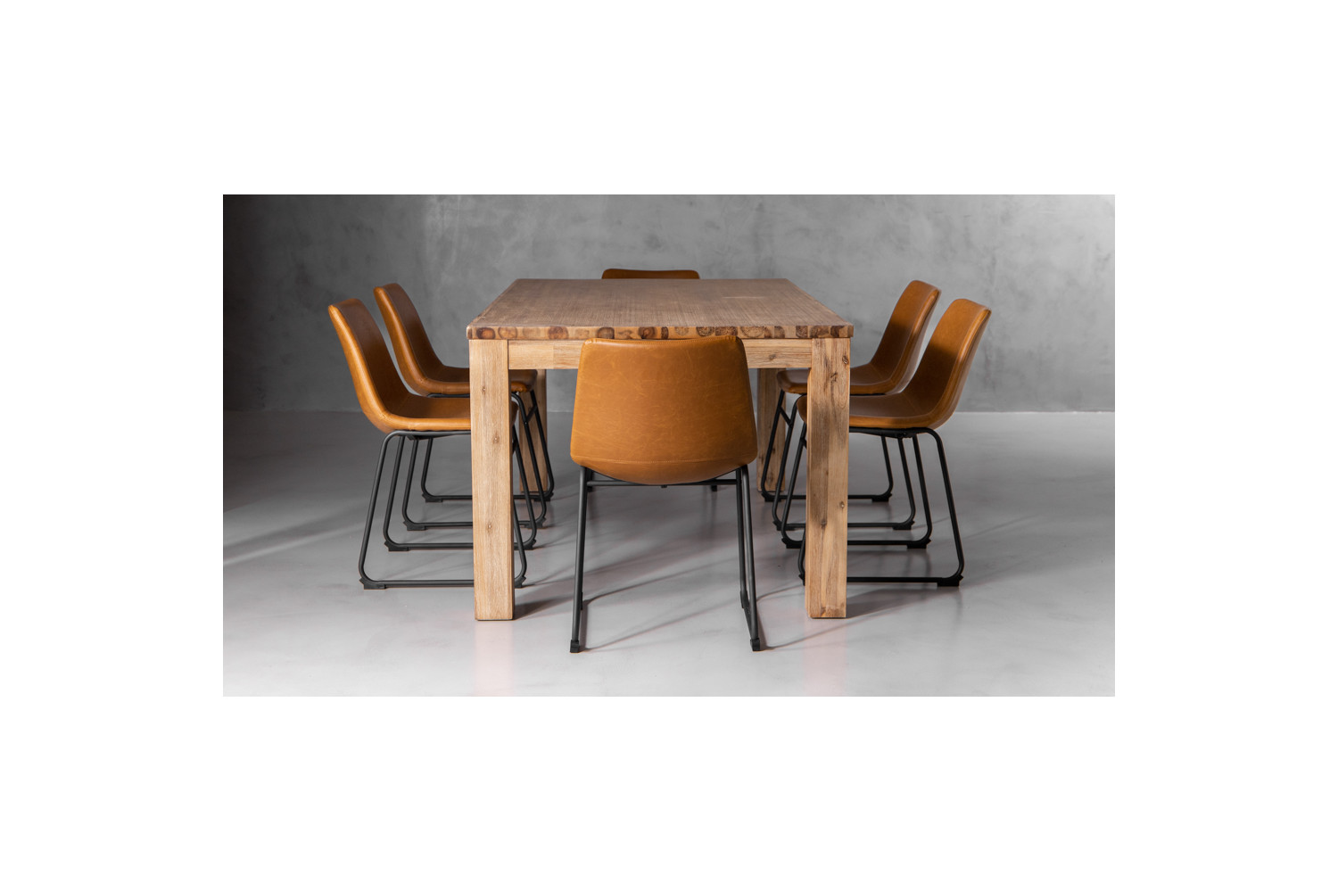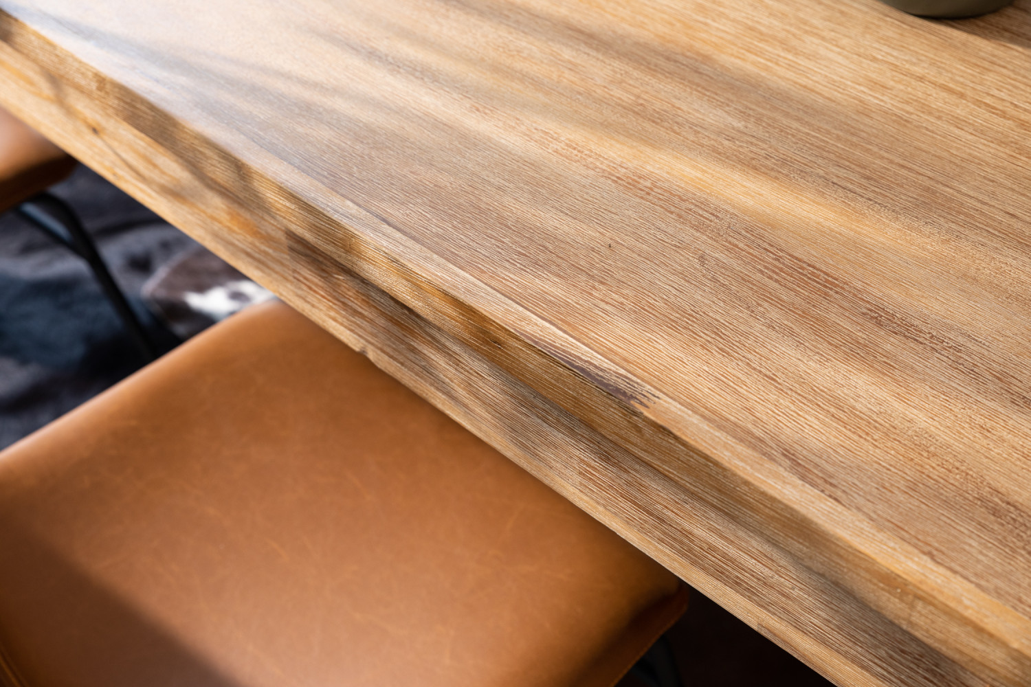 Built from solid Acacia wood, a high-density hardwood known for its durability, the Vancouver dining table promises to remain the centre of your dining space for decades to come. The wire brush technique works beautifully to bring out the unique grain of this wood while giving it a slightly weathered look that will hide any accidental scratches.