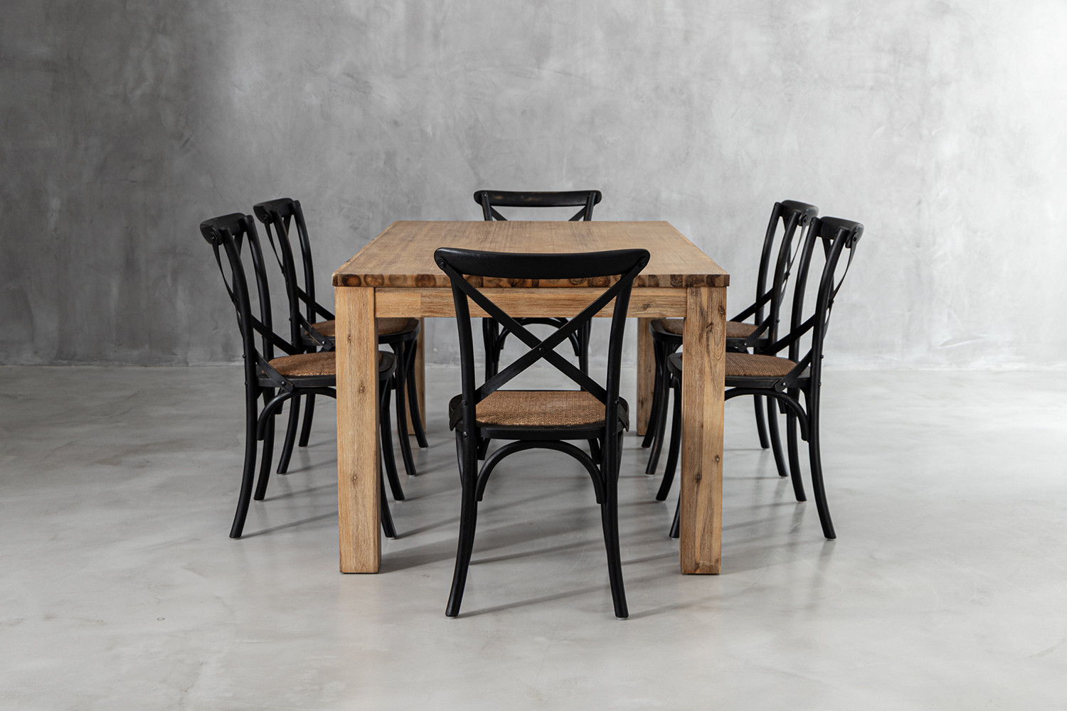 Vancouver La Rochelle 6-Seater Dining Set - 1.8m - Rustic Black