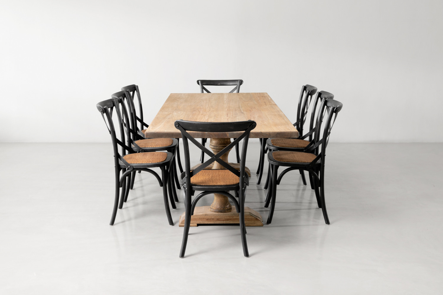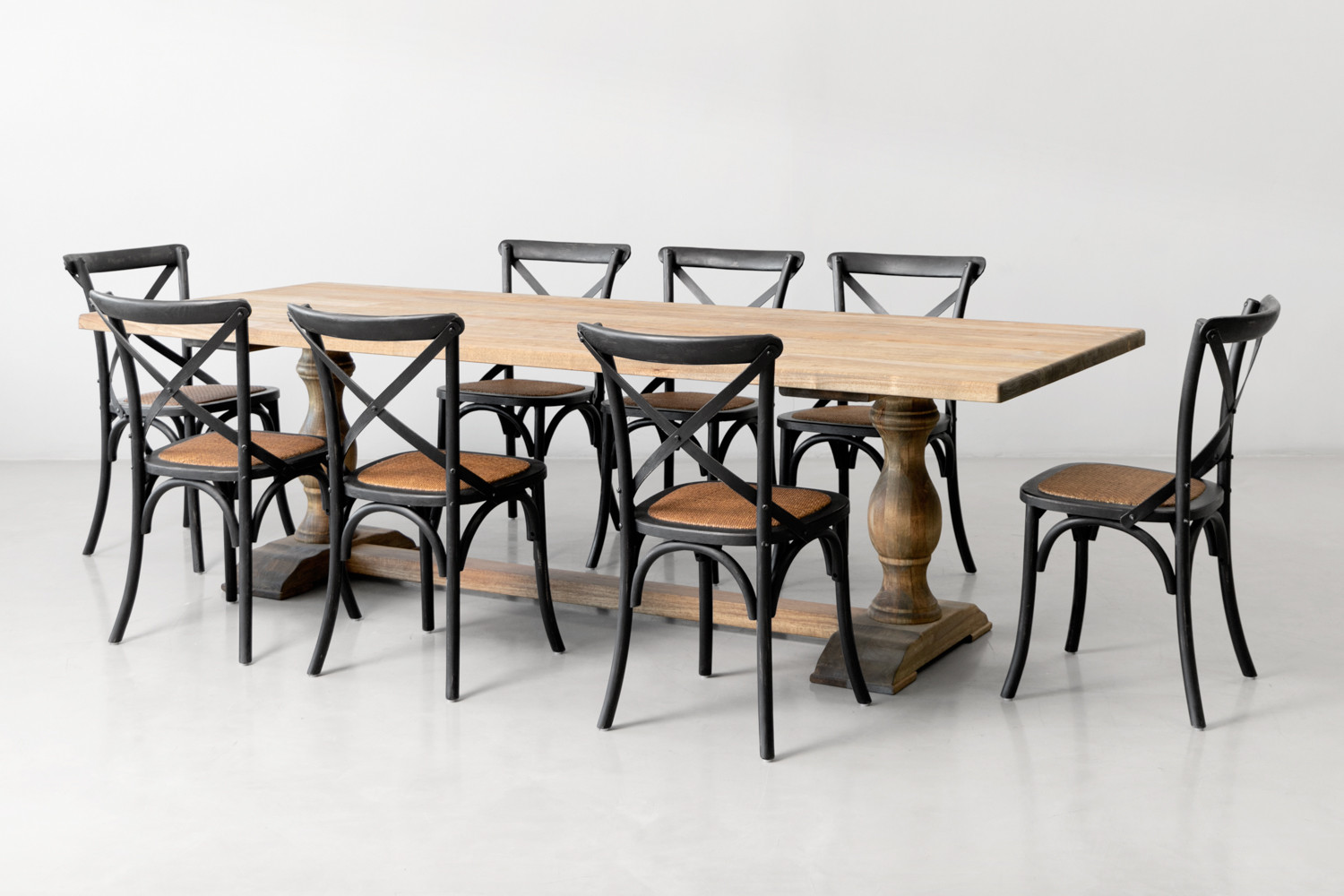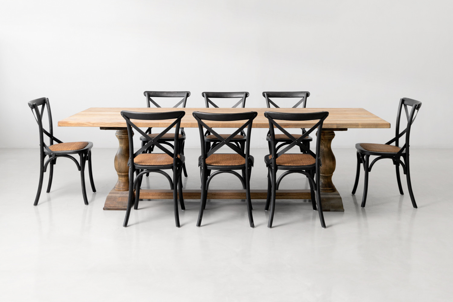 - Dining Table featuring monastery style legs crafted from solid Rubberwood