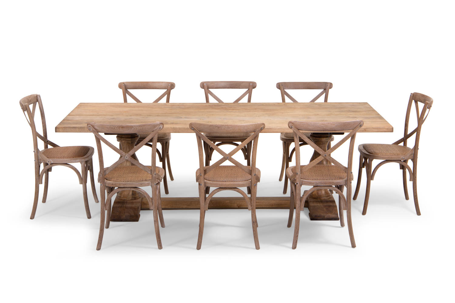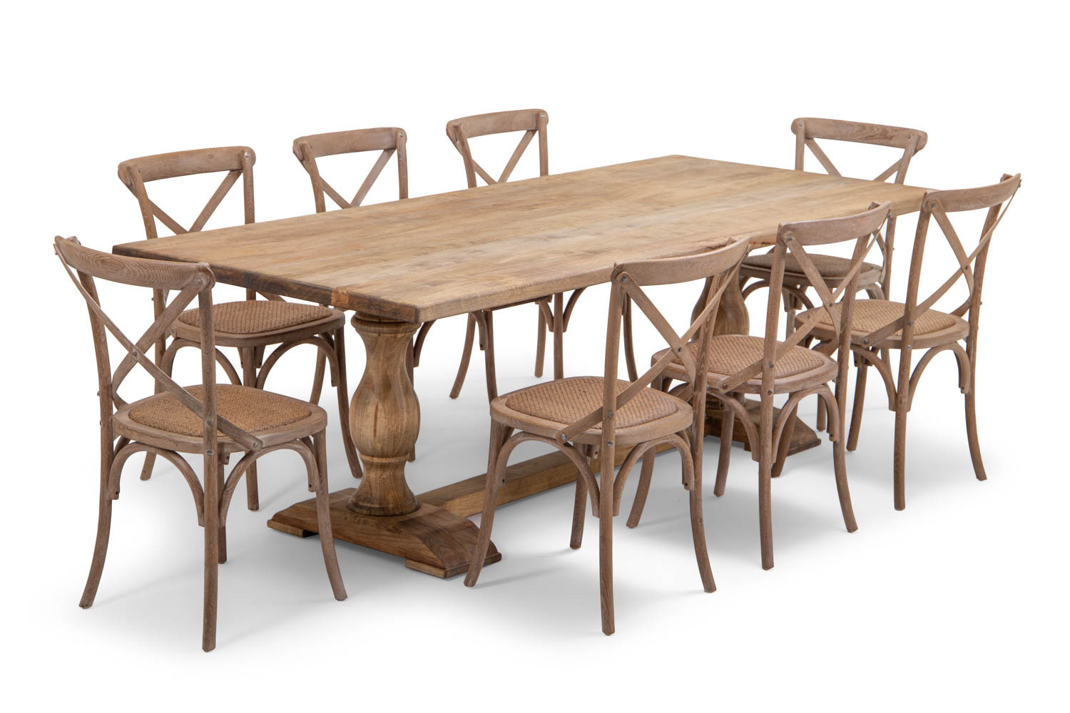 - Bordeaux Dining Table featuring monastery style legs crafted from solid rubberwood