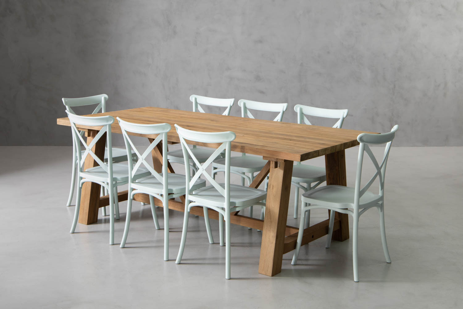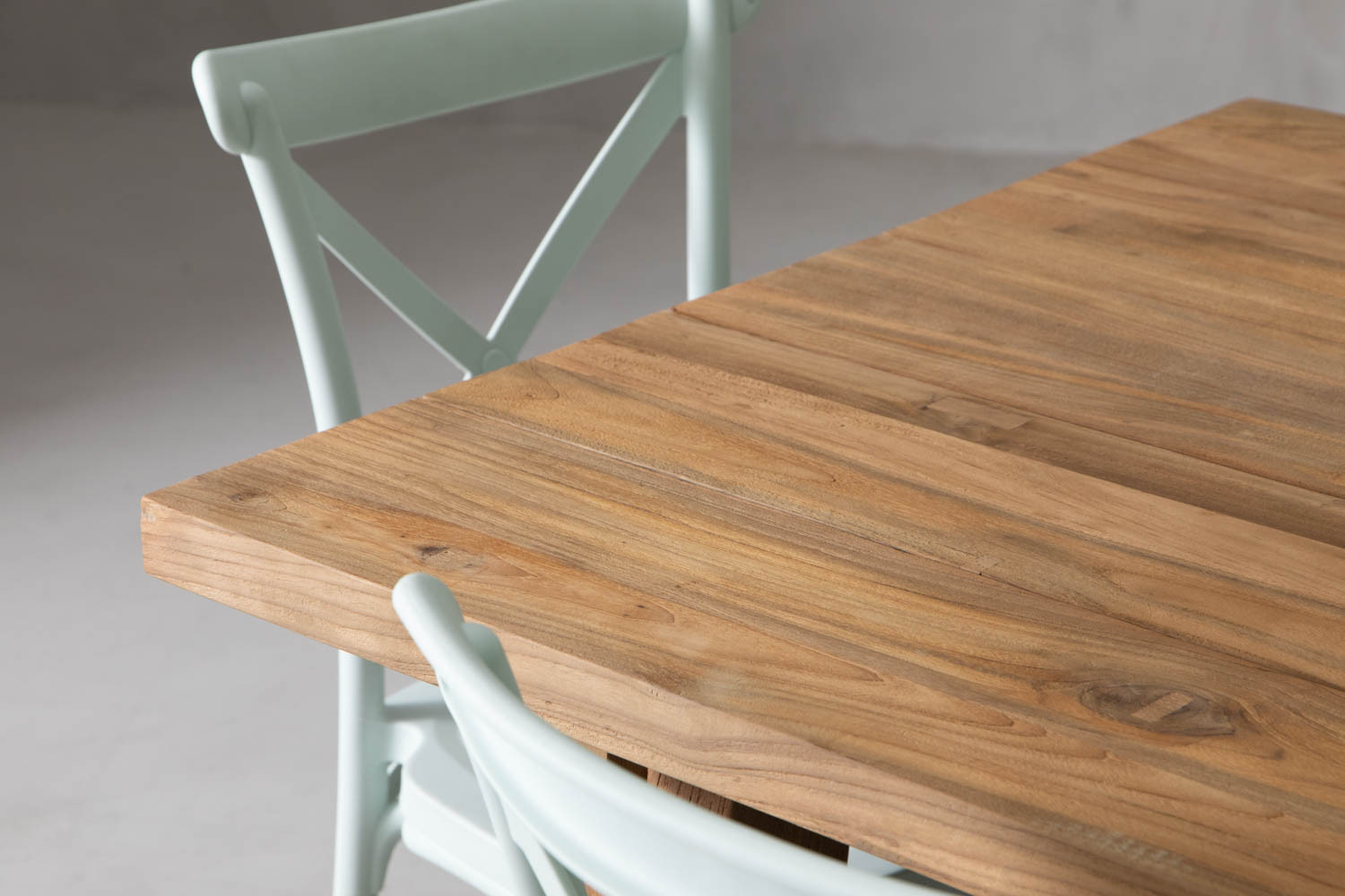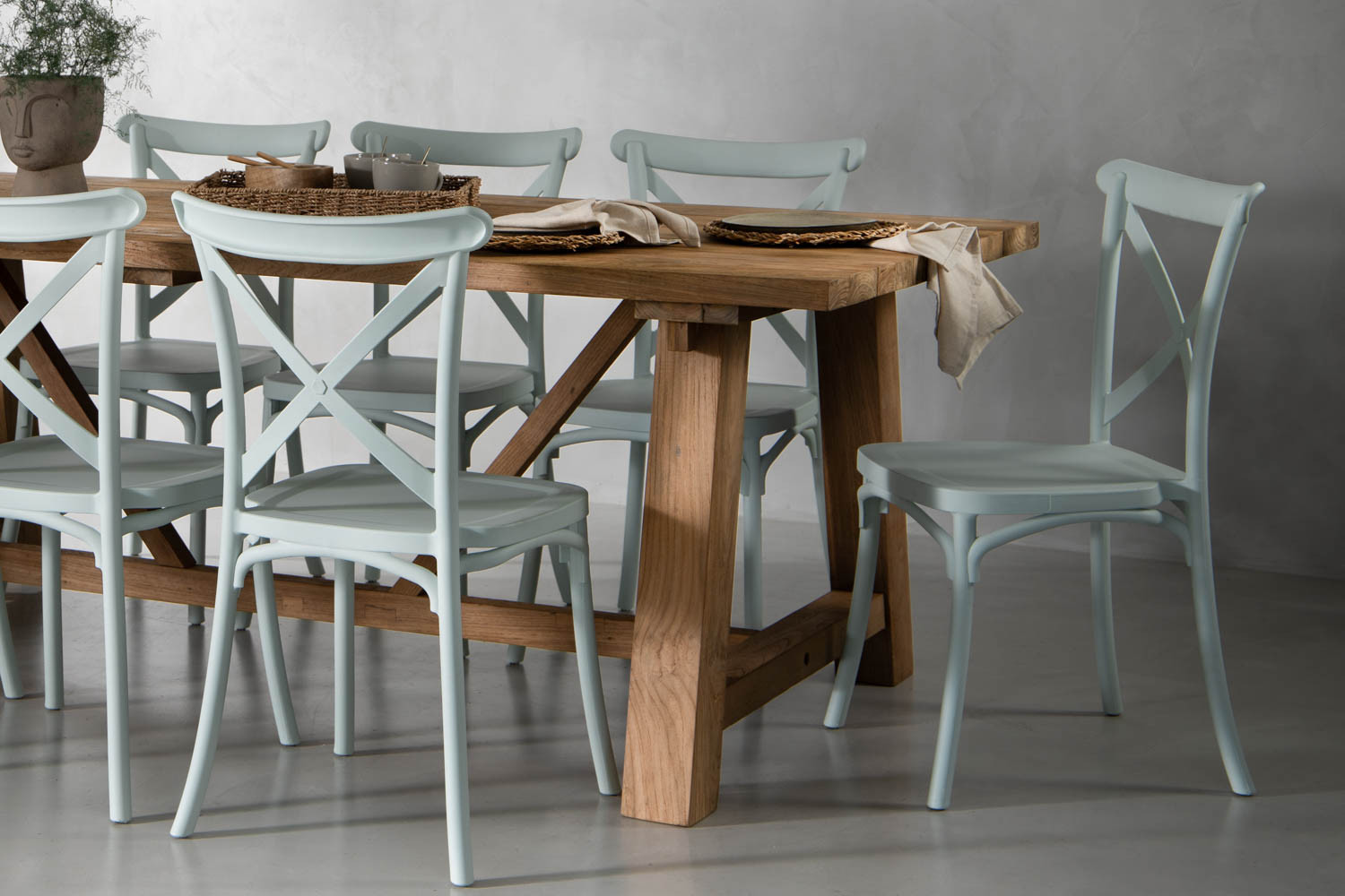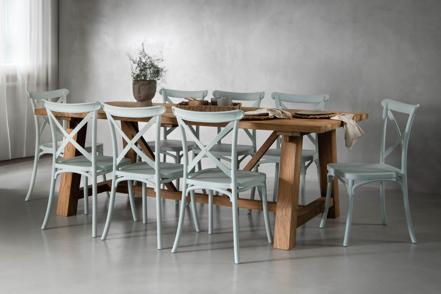 With its solid teak wood construction and stunning rustic finish, it's easy to appreciate the craftsmanship of the Cavern Dining Table. Its style is accentuated even further with the addition of eight Durance Dining Chairs to form a perfectly complementary set. It’s a pairing that prioritises elegant dining and utmost comfort for your guests.