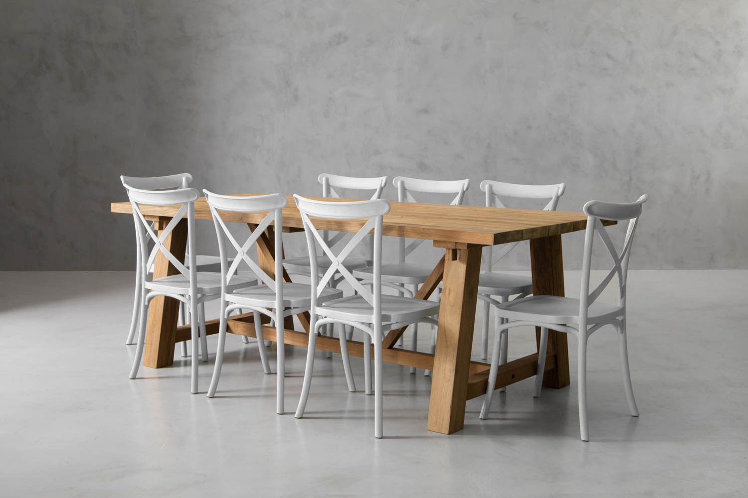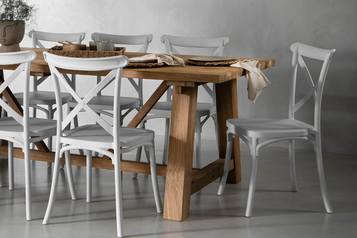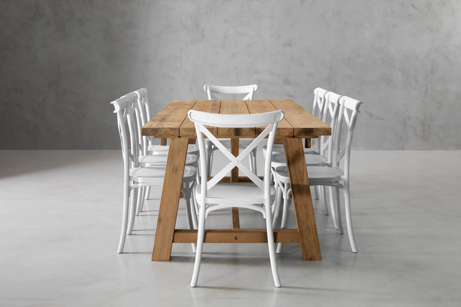 With its solid teak wood construction and stunning rustic finish, it's easy to appreciate the craftsmanship of the Cavern Dining Table. Its style is accentuated even further with the addition of eight Durance Dining Chairs to form a perfectly complementary set. It’s a pairing that prioritises elegant dining and utmost comfort for your guests.