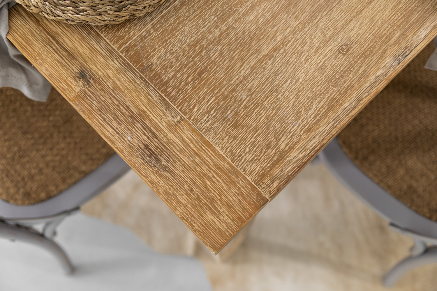 Built from solid Acacia wood with Acacia wood veneers, a high-density hardwood known for its durability, the Clayden Dining Table promises to remain the centre of your dining space for decades to come. The wire brush technique works beautifully to bring out the unique grain of this wood, while giving it a slightly weathered look that will hide any accidental scratches.