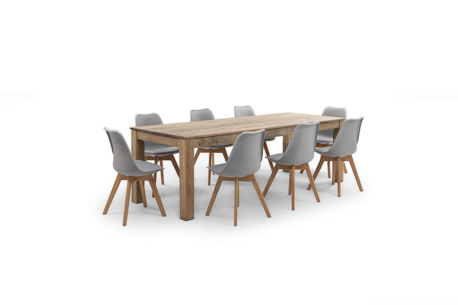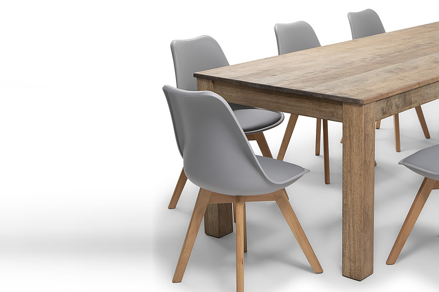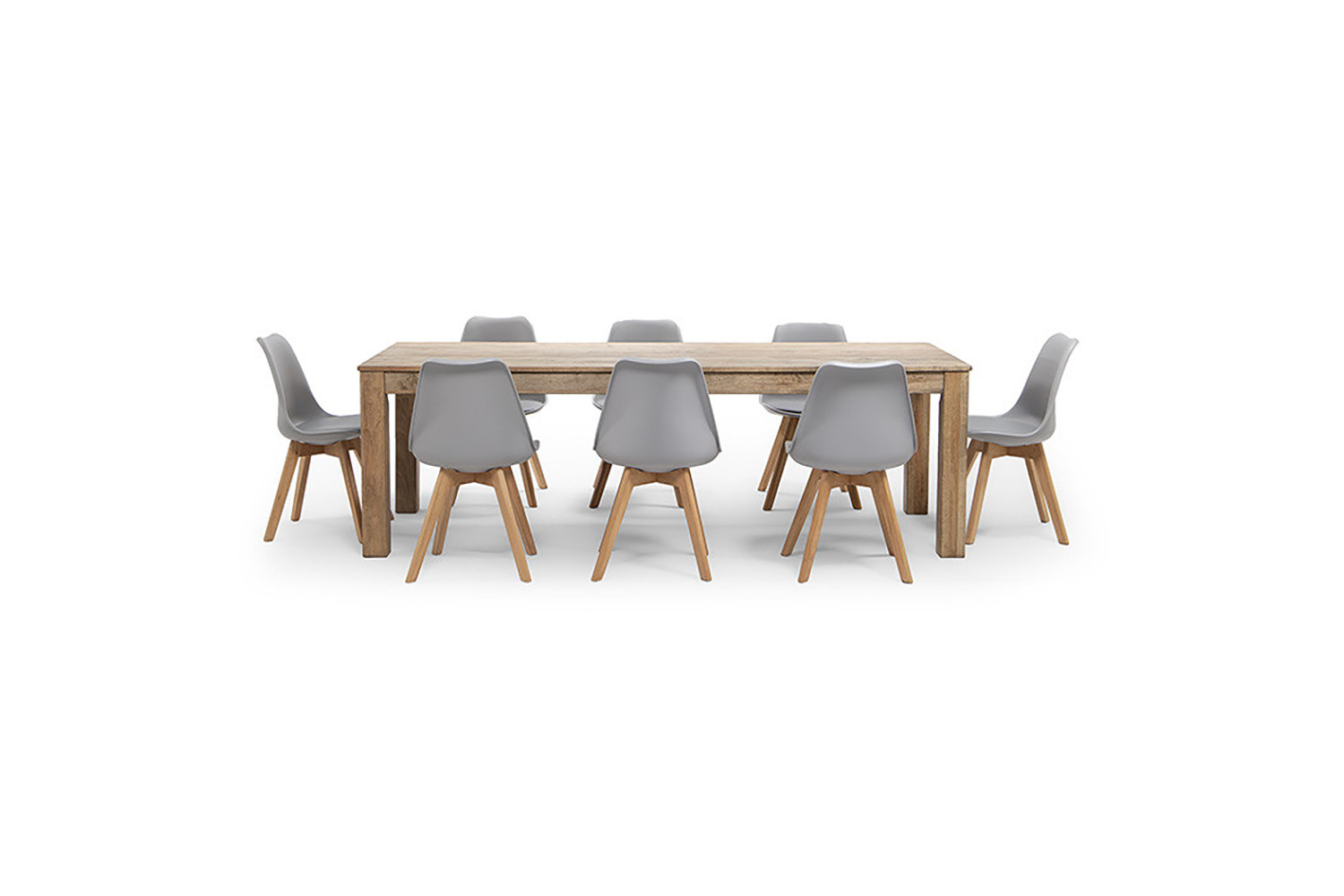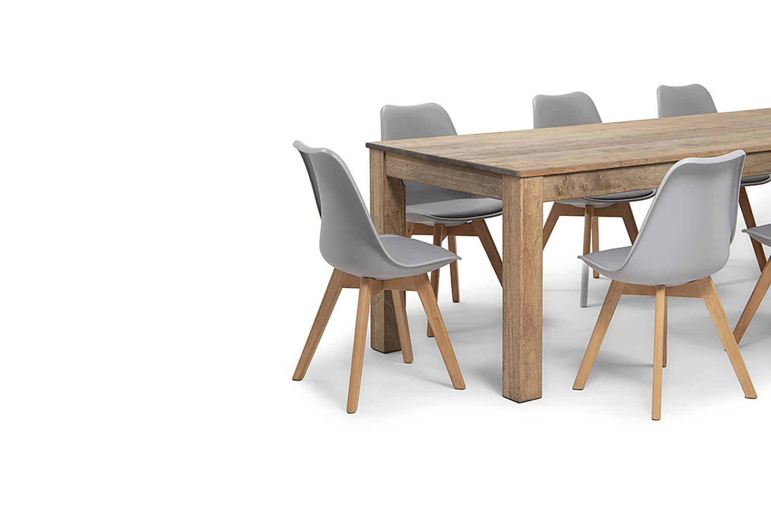 The combination of our Montreal Dining table and eight Atom Dining Chairs brings a uniquely modern centre point to your dining room. Crafted from sustainable rubberwood, the Montreal Dining Table produces a warm and welcoming dining experience while the contemporary Atom Dining Chair, with its polypropylene seat and beechwood legs, offers a sturdy and enjoyable seating experience.