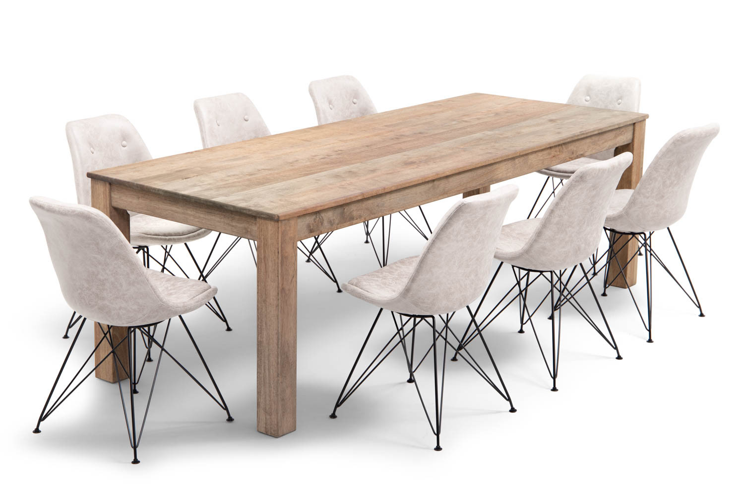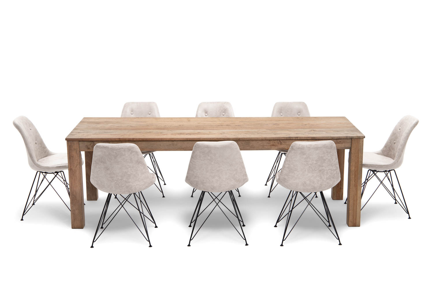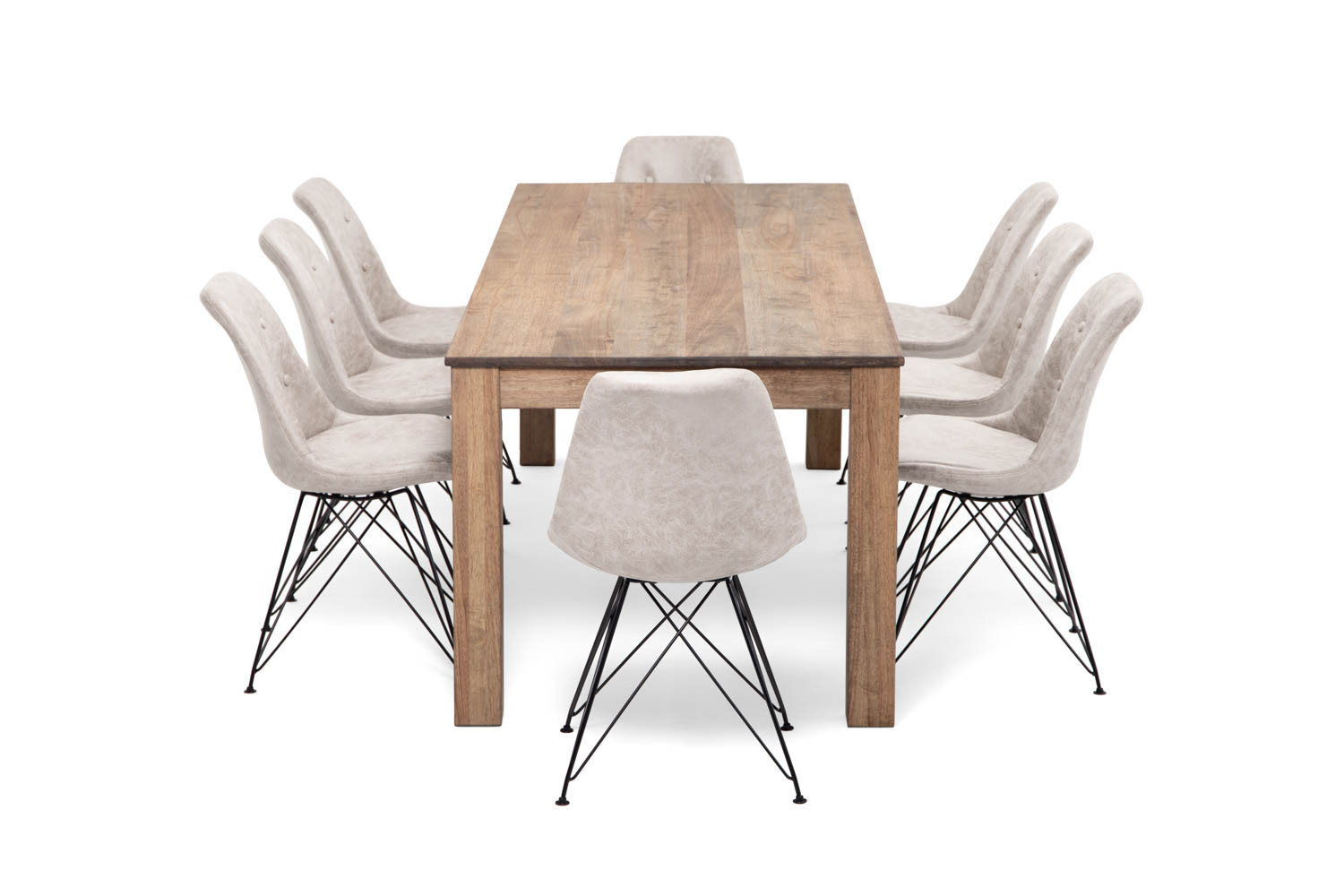 The Montreal 2.4m Dining Table boasts a durable solid wood design that will draw your family and guests in with its warm laid-back feel. The neutral tones and a classic contemporary design make this piece an ideal addition to any modern home. When combining this with the Enzo dining chair (a creative take on the classic Eames chair) you end up with a dining set that feels stylish, elegant and authentic.