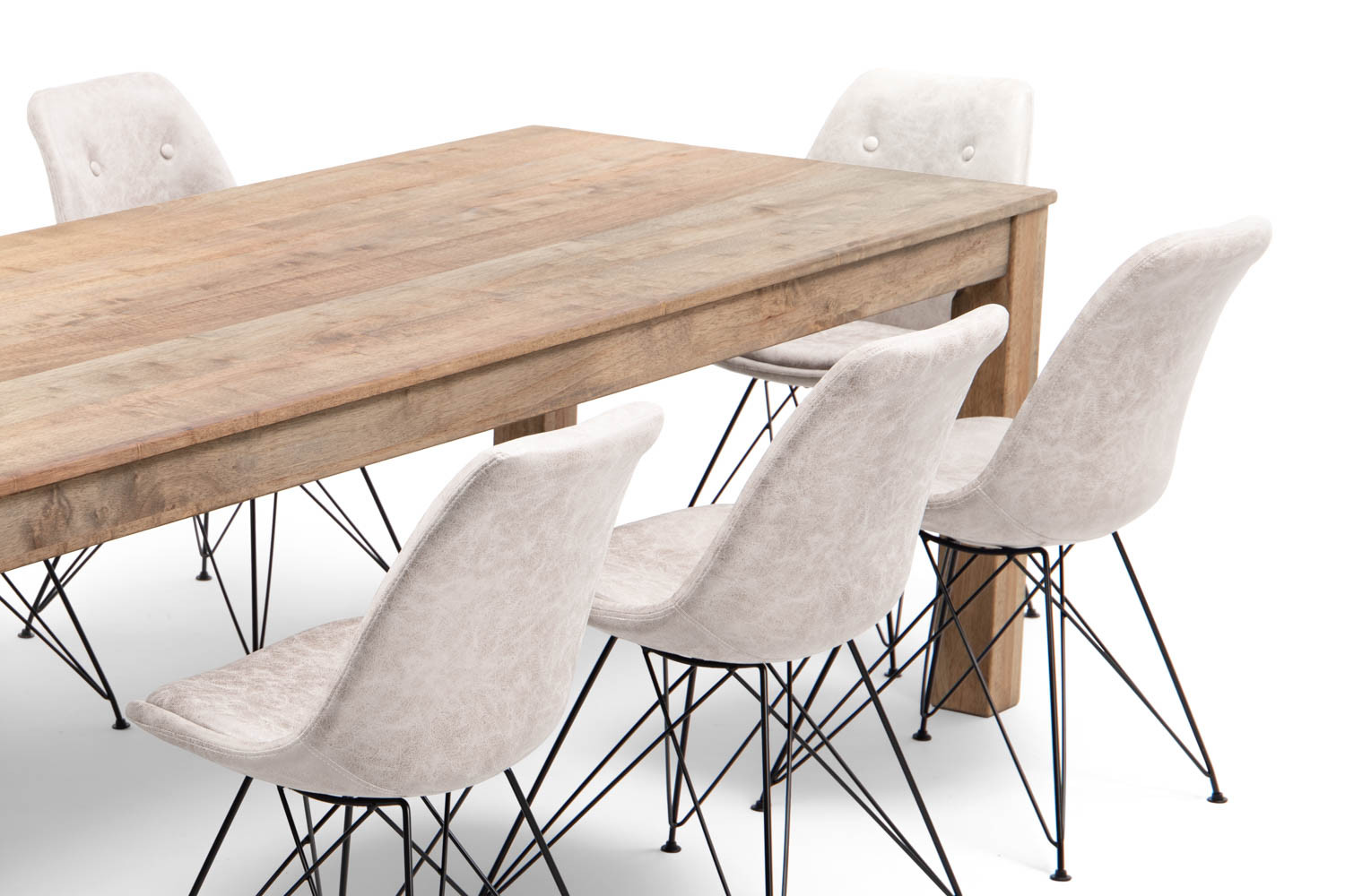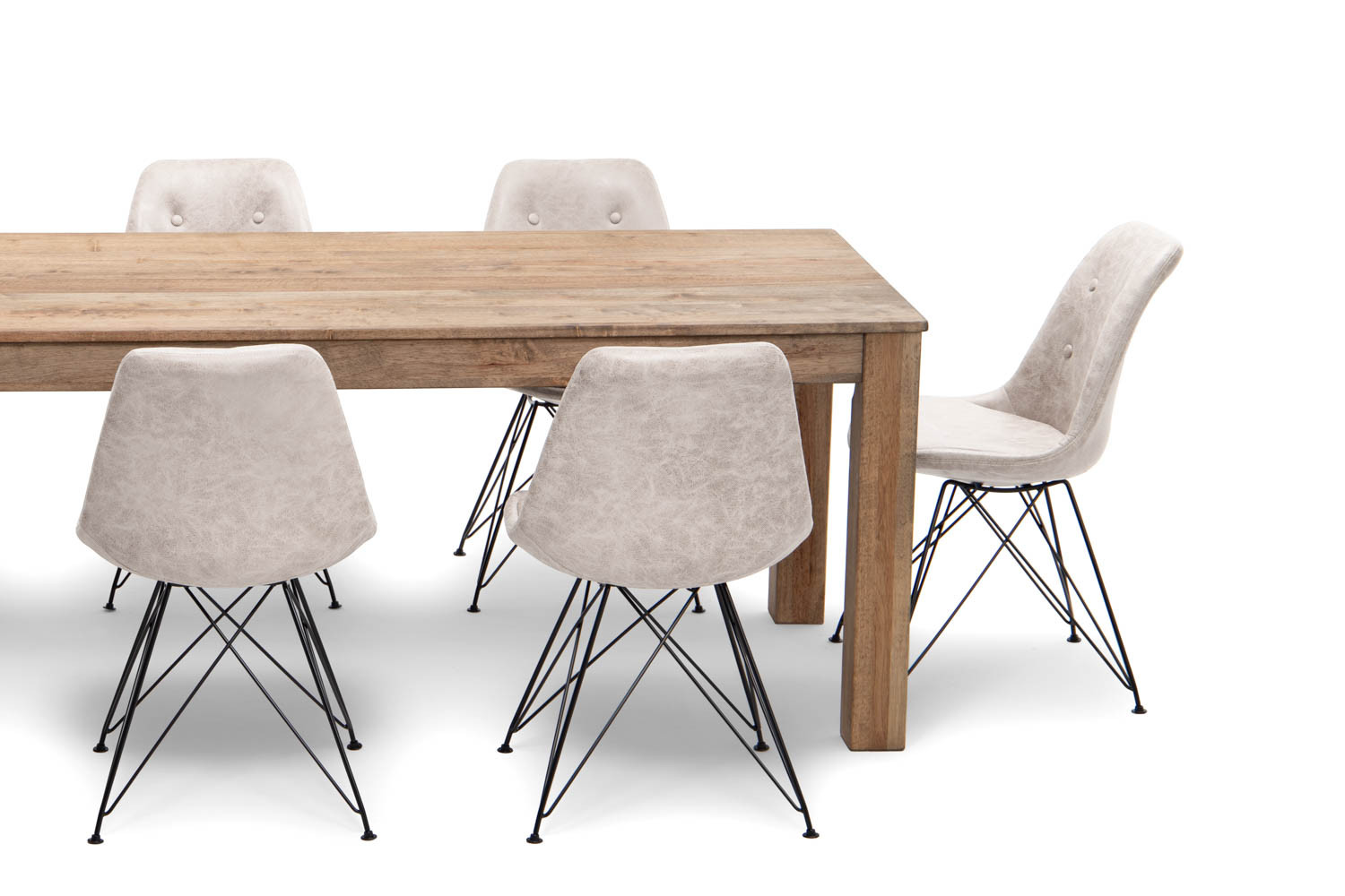 This dining set is available in three gorgeous neutrals—vintage brown, vintage stone, and vintage grey- to blend in with any colour scheme.