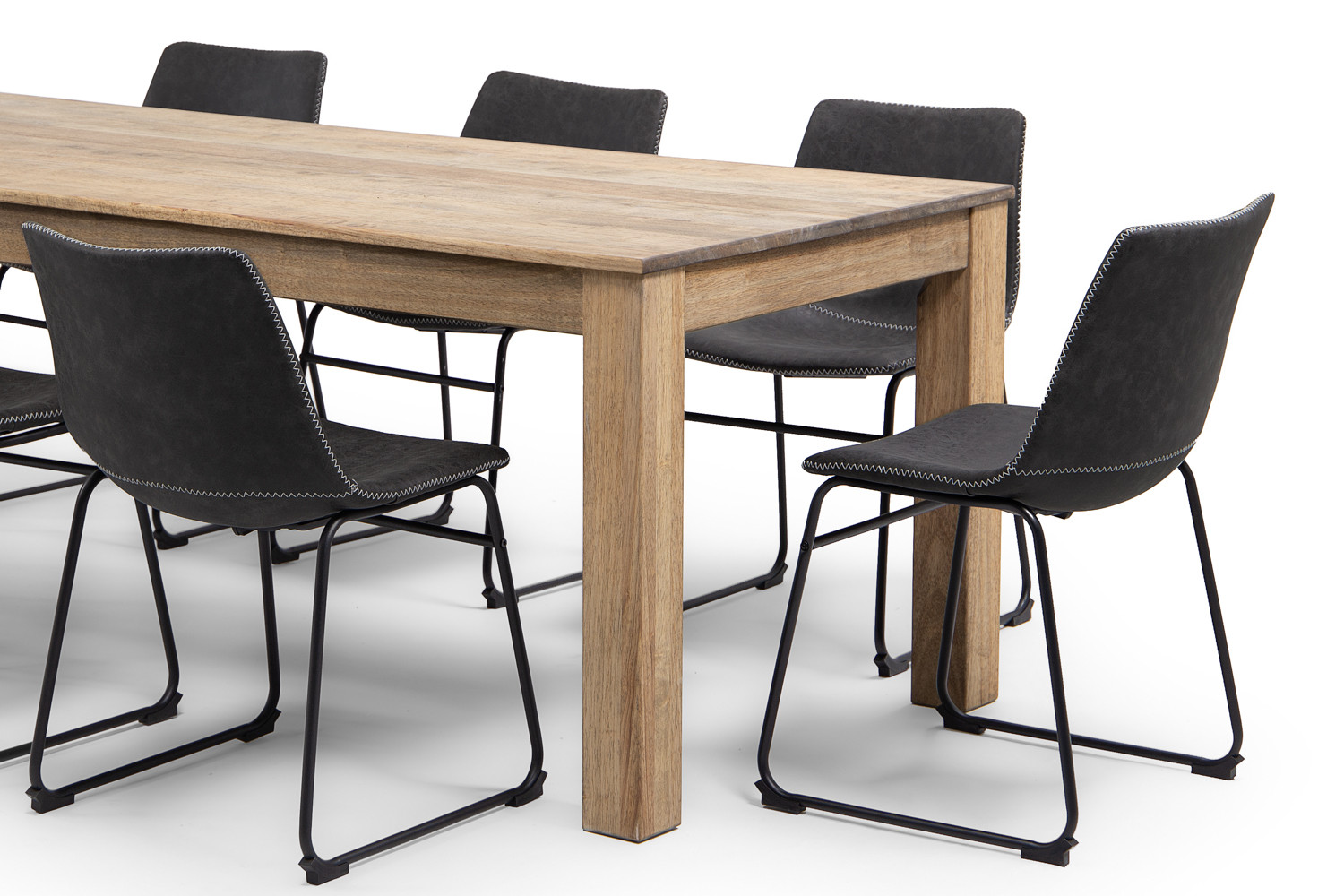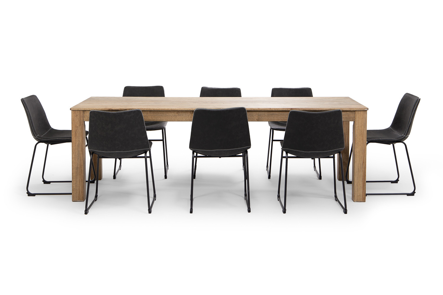 This contemporary dining arrangement is ideal for an everyday dining experience. The sustainable Rubberwood used to craft the Montreal Dining Table produces a warm and welcoming feel which pairs perfectly with the eight versatile chairs.