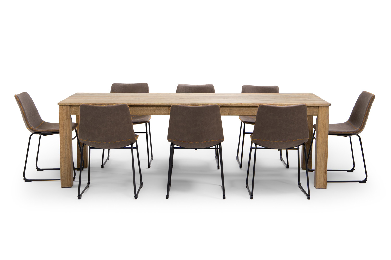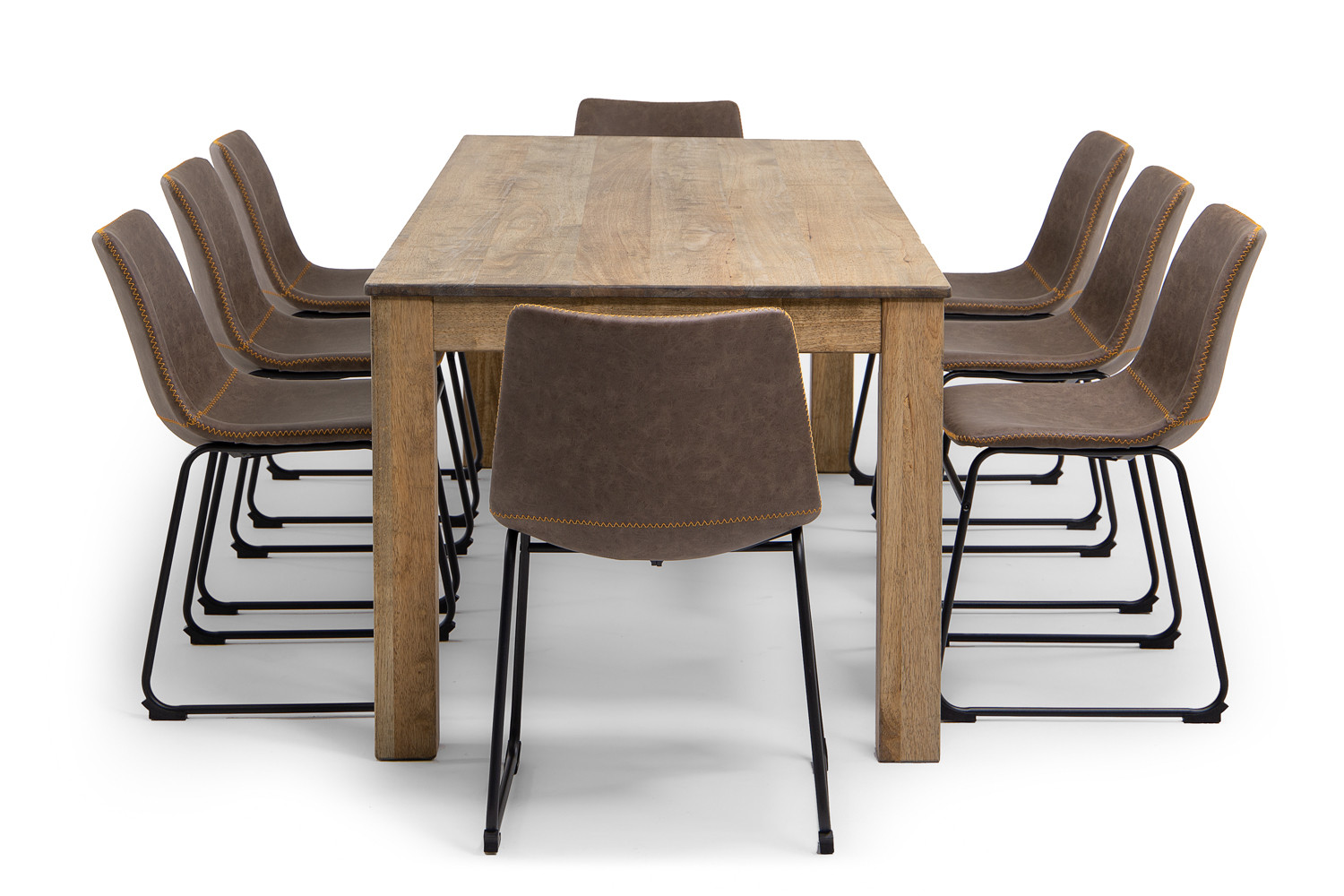 This contemporary dining arrangement is ideal for an everyday dining experience. The sustainable Rubberwood used to craft the Montreal Dining Table produces a warm and welcoming feel which pairs perfectly with the eight versatile chairs.
