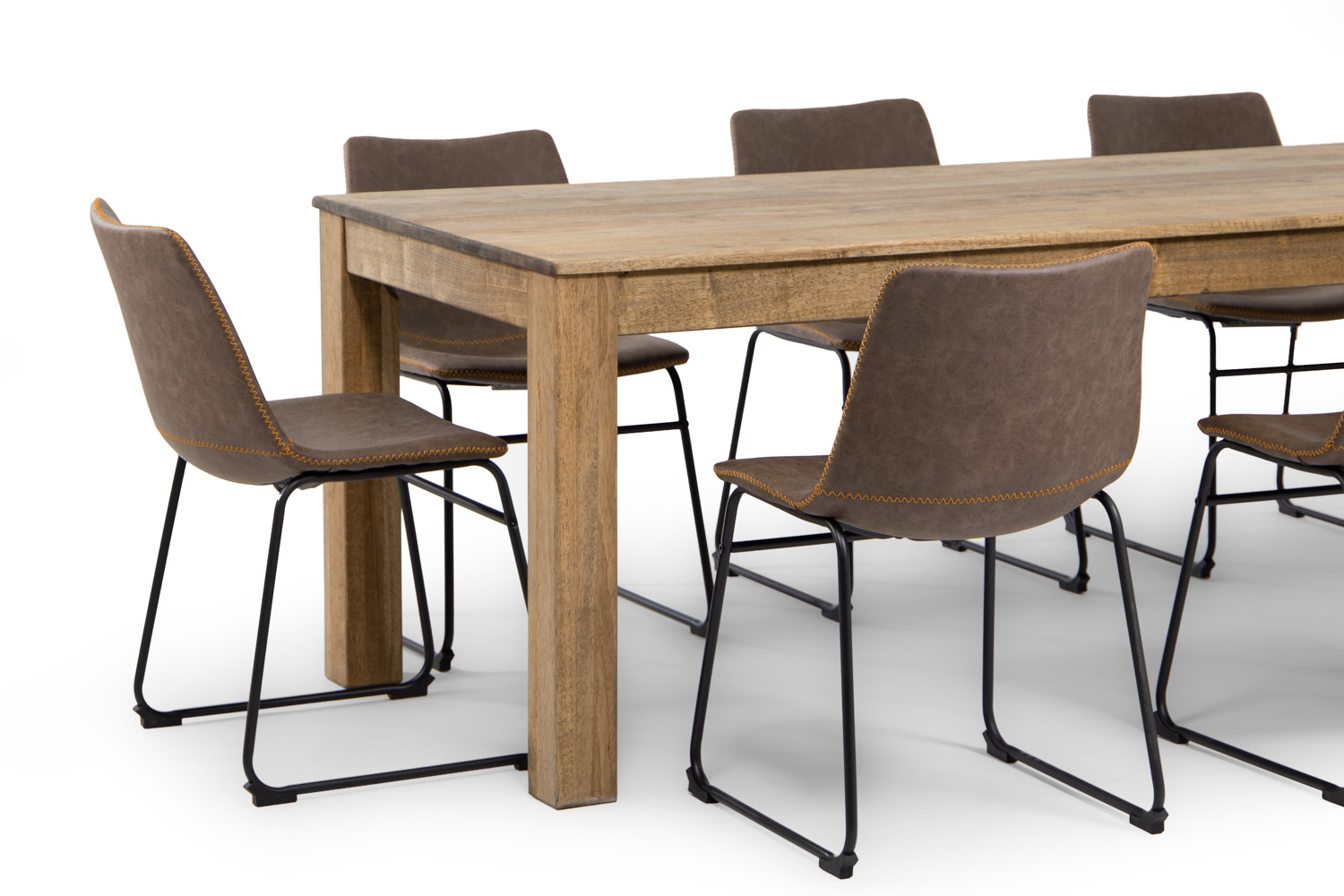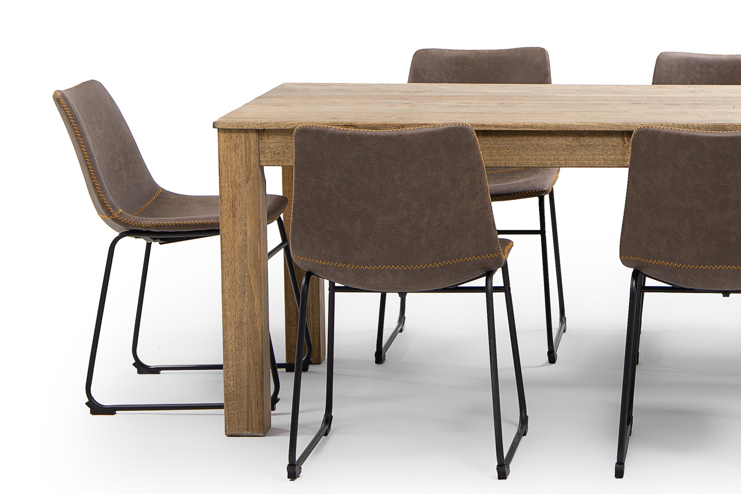 This contemporary look dining set means that you and your family can enjoy a versatile, comfortable, and yet aesthetically pleasing dining experience. The stylish chairs are available in storm grey, ginger, camel and ebony.