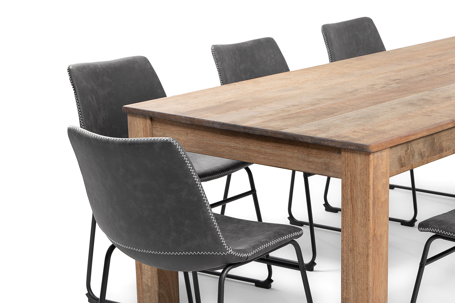 This contemporary look dining set means that you and your family can enjoy a versatile, comfortable, and yet aesthetically pleasing dining experience. The stylish chairs are available in storm grey, ginger, camel and ebony.