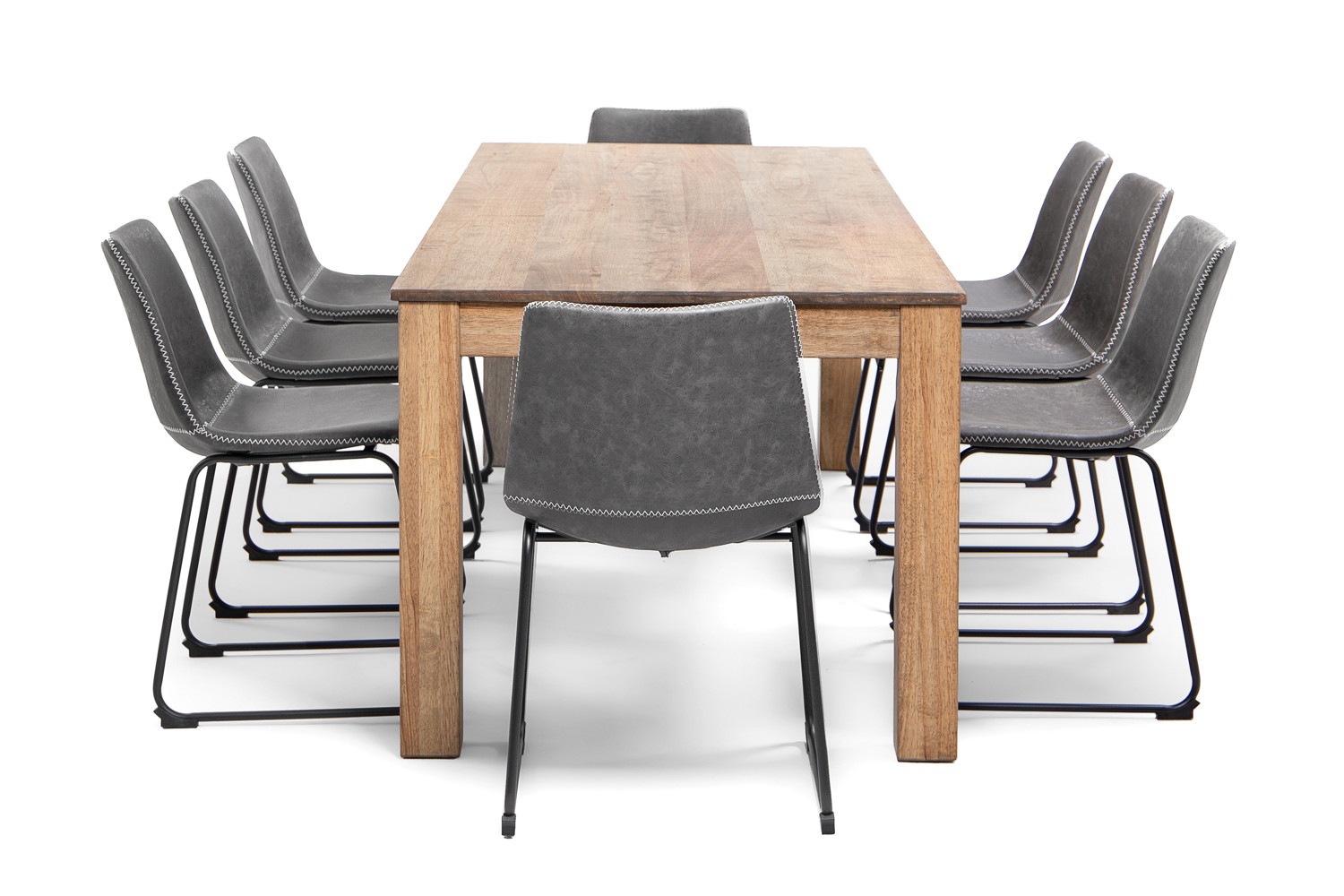 This contemporary dining arrangement is ideal for an everyday dining experience. The sustainable Rubberwood used to craft the Montreal Dining Table produces a warm and welcoming feel which pairs perfectly with the eight versatile chairs.