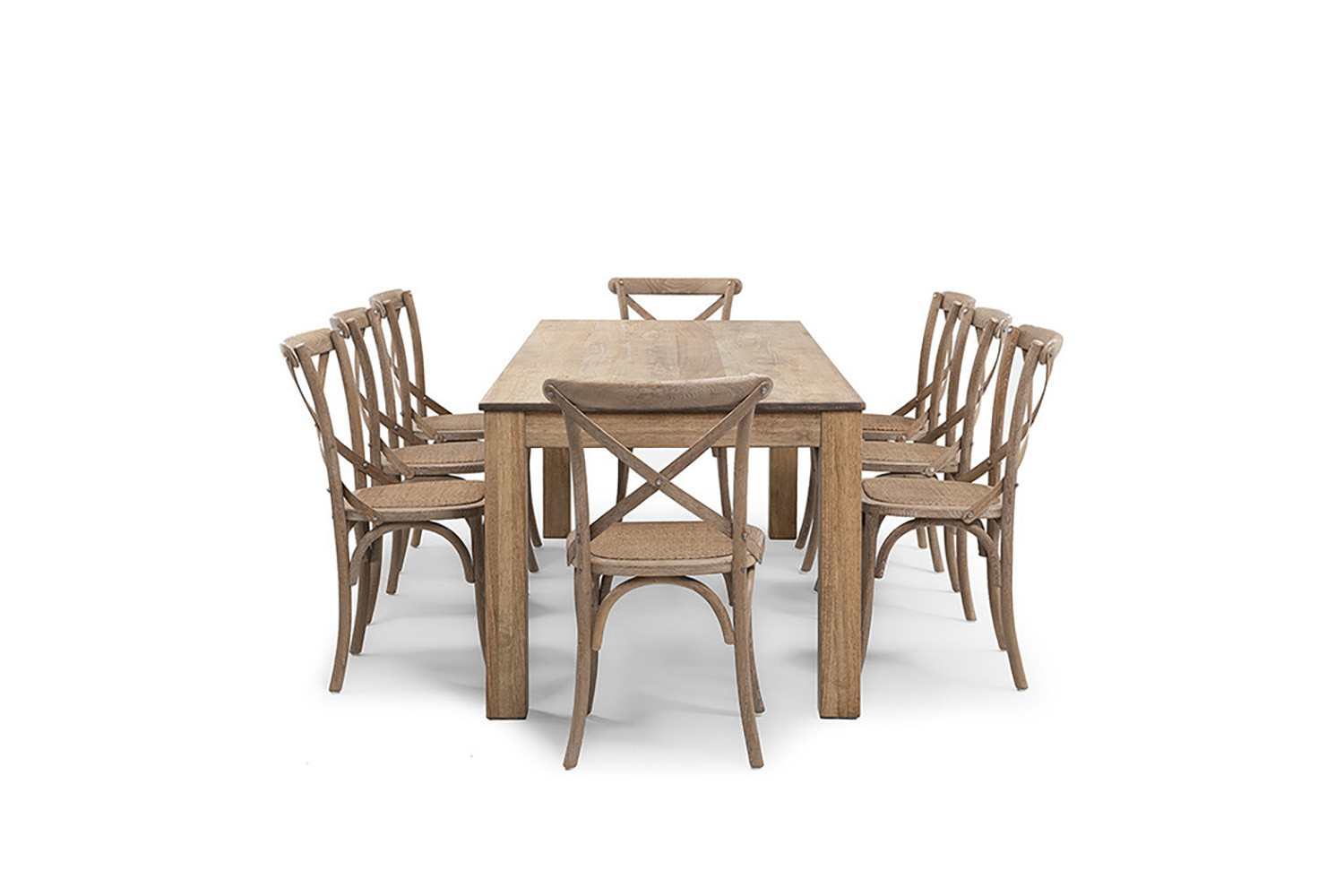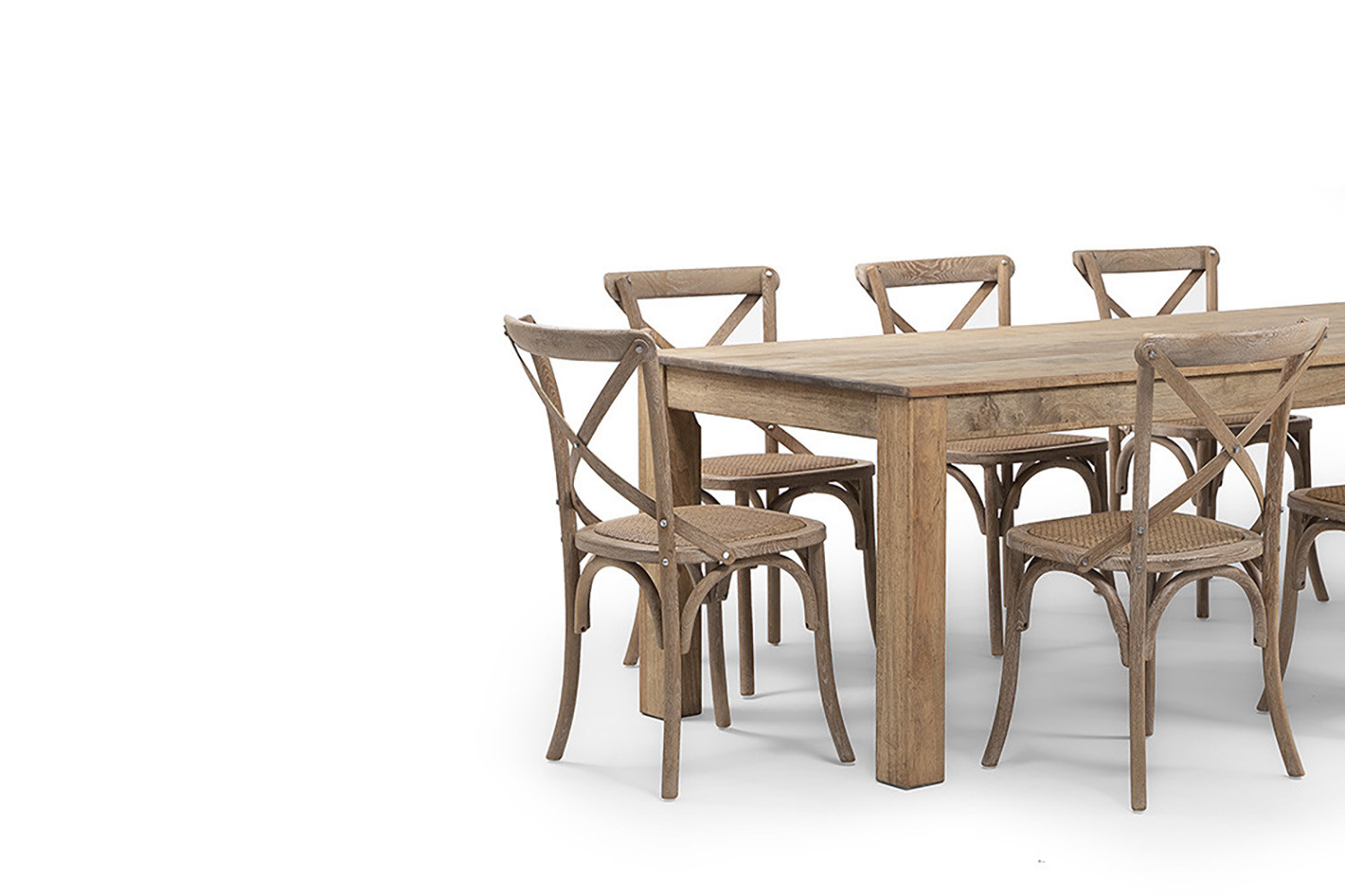 The combination of our Montreal Dining table and eight Provance Dining Chairs brings the inspiration of French country living to your dining room. Featuring a solid oak frame with a wire-brushed finish and padded rattan seat the Provance Dining Chair perfectly pairs with Montreal’s neutral tones and classic contemporary design.