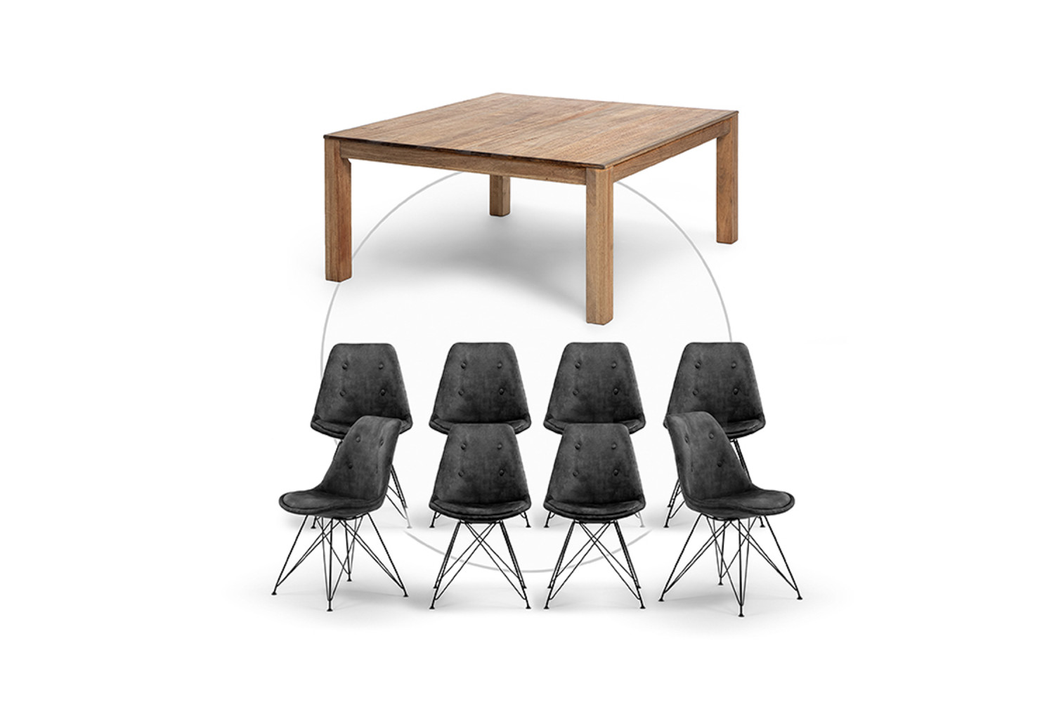 Montreal Square + Enzo 8-Seater Dining Set (1.5m) - Aged Mercury