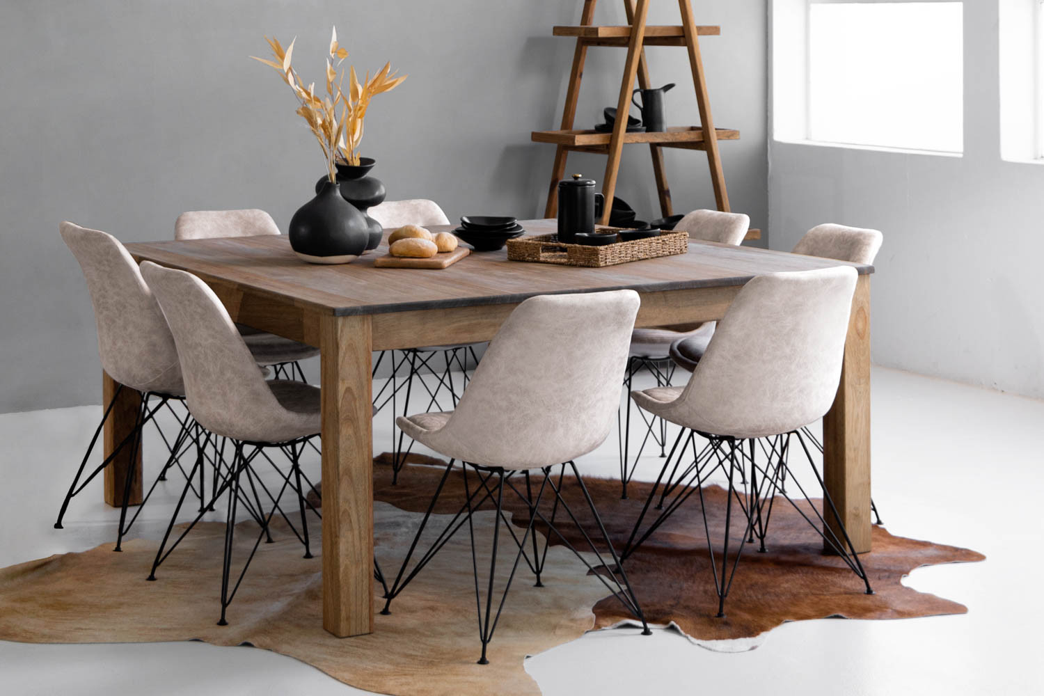 The supportive design of the Enzo’s plush seat padding upholstered in high-quality stain-resistant microfibre with a vintage weathered finish gives these chairs a superbly comfortable and relaxing feel. The Steel Eiffel legs add a visually pleasing contrast while providing strong and durable support.