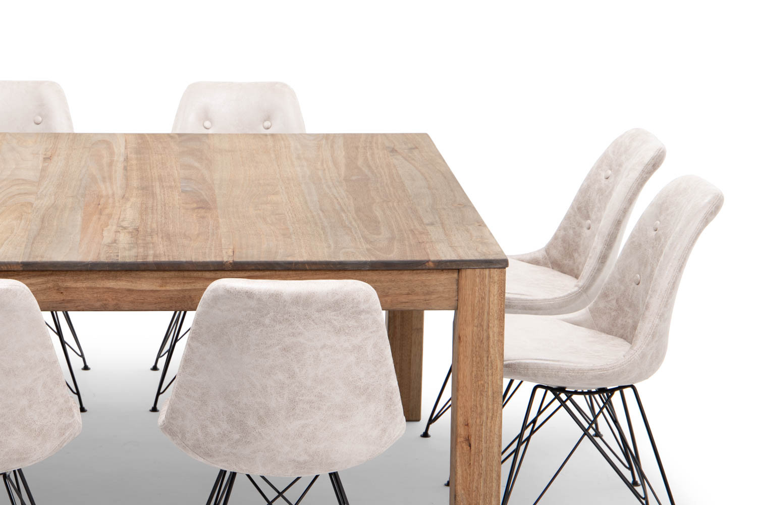 The Montreal 1.5m Dining Table boasts a durable solid wood design that will draw your family and guests in with its warm laid-back feel. The neutral tones and a classic contemporary design make this piece an ideal addition to any modern home. When combining this with the Enzo dining chair (a creative take on the classic Eames chair) you end up with a dining set that feels stylish, elegant and authentic.