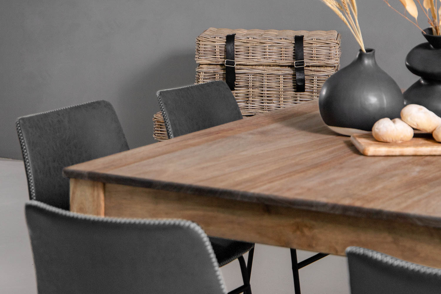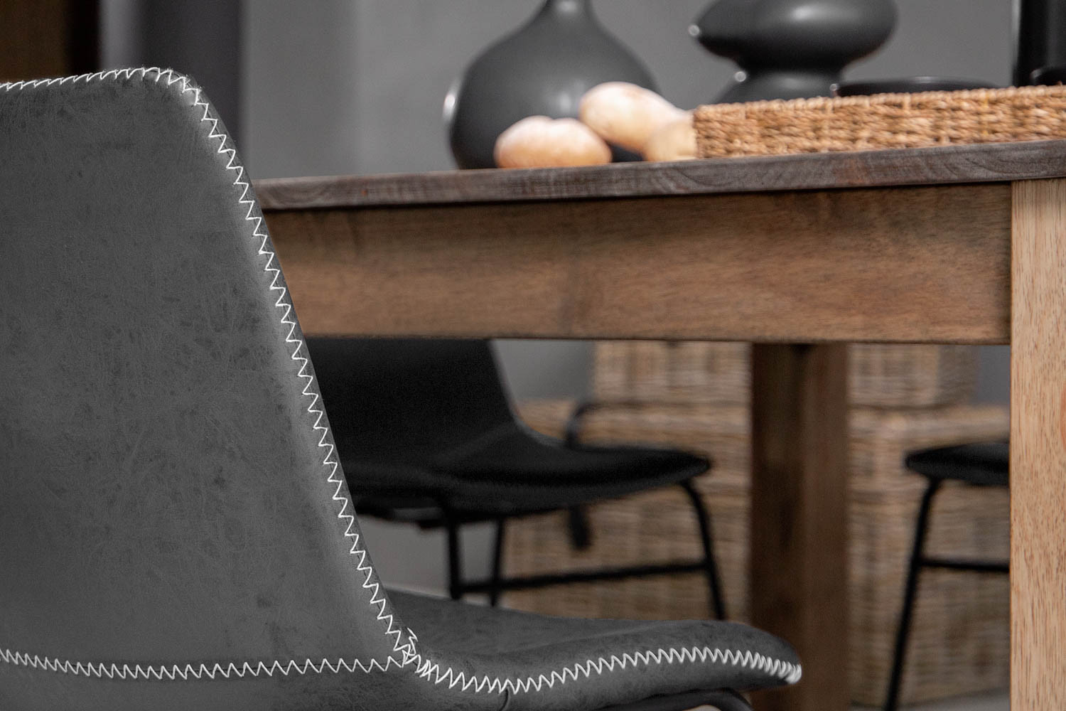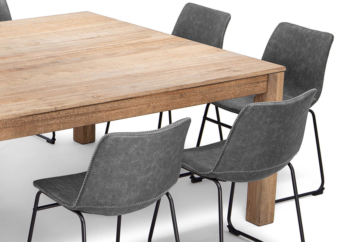 This contemporary look dining set means that you and your family can enjoy a versatile, comfortable, and yet aesthetically pleasing dining experience. The stylish chairs are available in storm grey, ginger, camel and ebony.