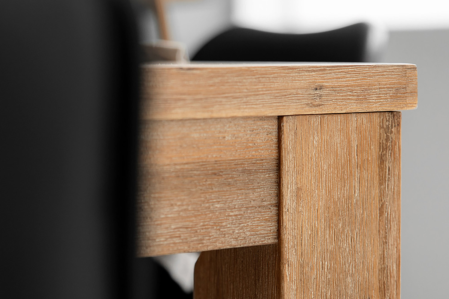 Built from solid Acacia wood, a high-density hardwood known for its durability, the Vancouver dining table promises to remain the centre of your dining space for decades to come. The wire brush technique works beautifully to bring out the unique grain of this wood while giving it a slightly weathered look that will hide any accidental scratches.