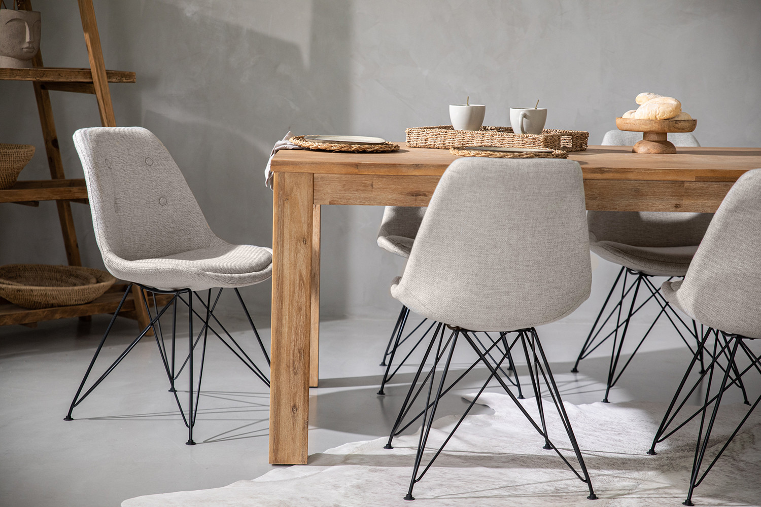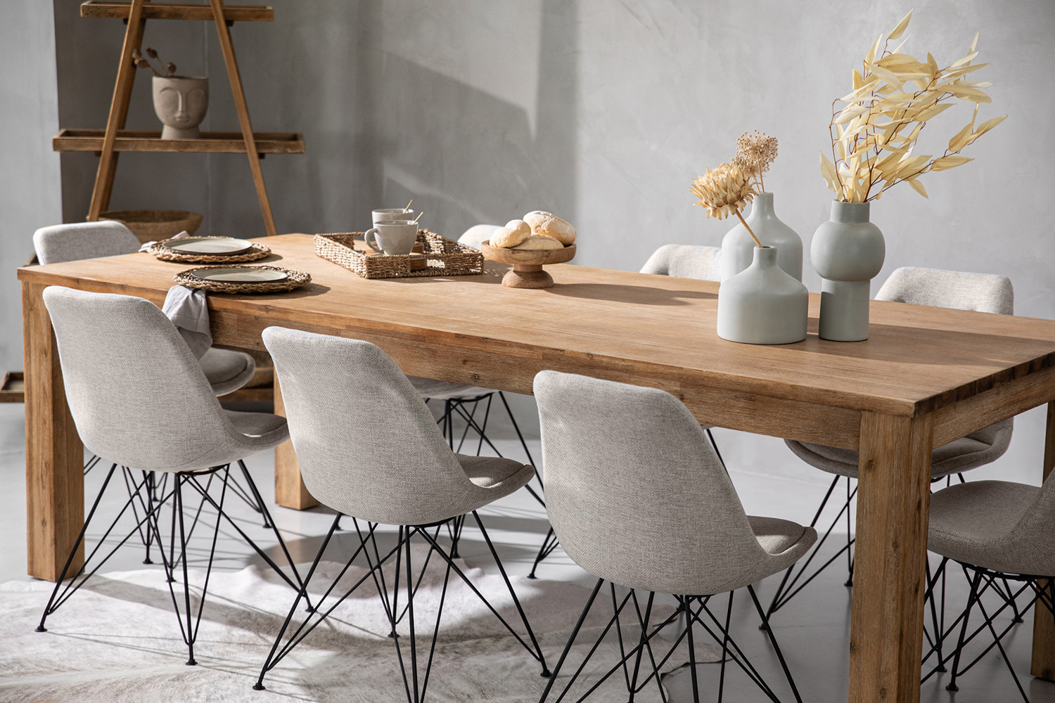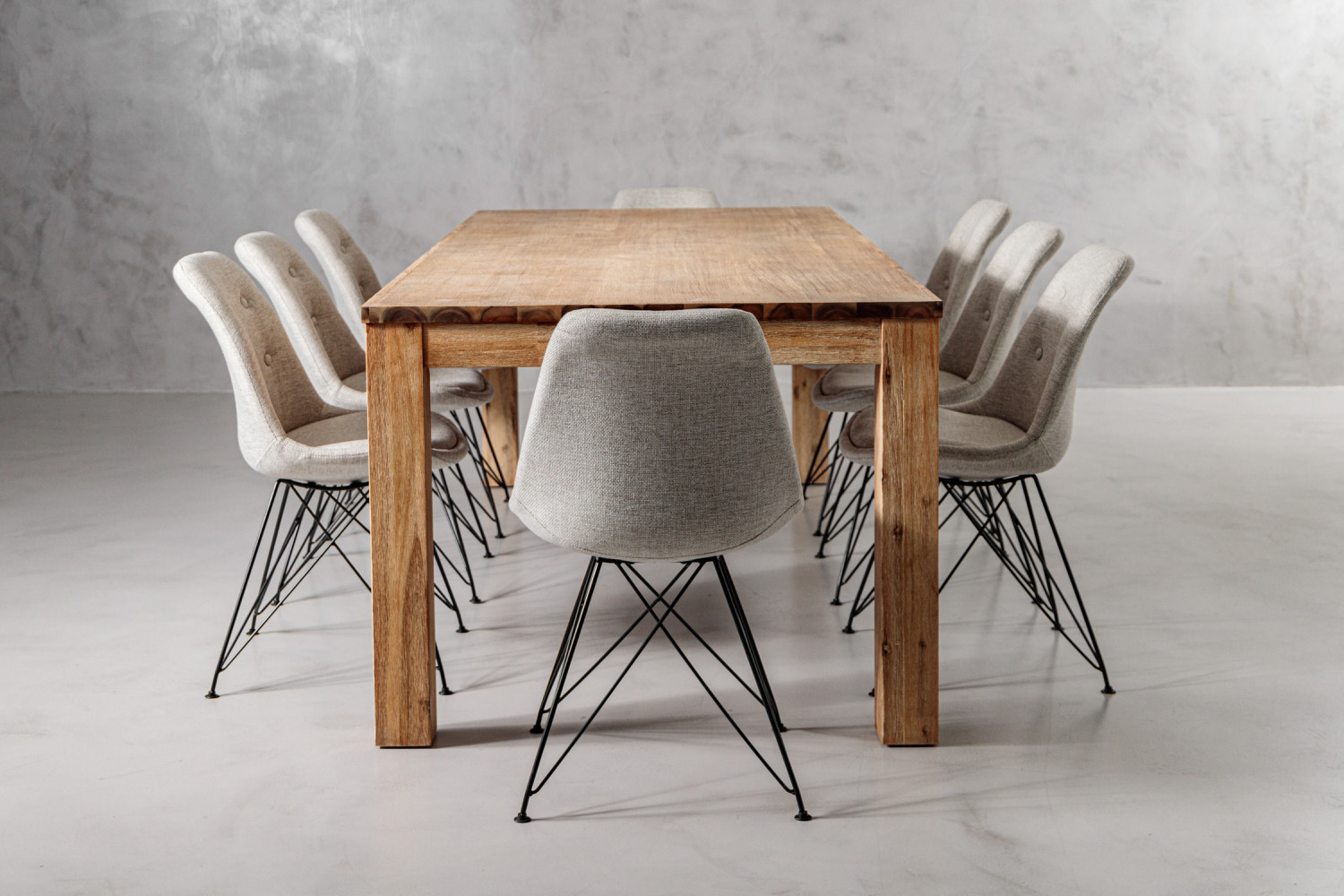 The Vancouver Enzo Dining Set boasts a robust 2.4m dining table built from solid Acacia wood - a high-density hardwood known for its durability – which is sure to remain the centre of your dining space for decades to come. Wire brushing gives this piece a beautifully natural, slightly rustic finish.