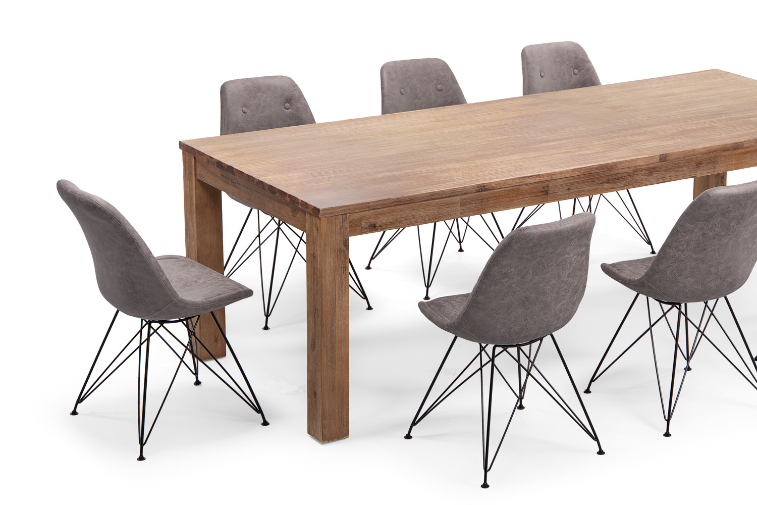 The Vancouver Enzo Dining Set boasts a robust 2.4m dining table built from solid Acacia wood - a high-density hardwood known for its durability – which is sure to remain the centre of your dining space for decades to come. Wire brushing gives this piece a beautifully natural, slightly rustic finish.