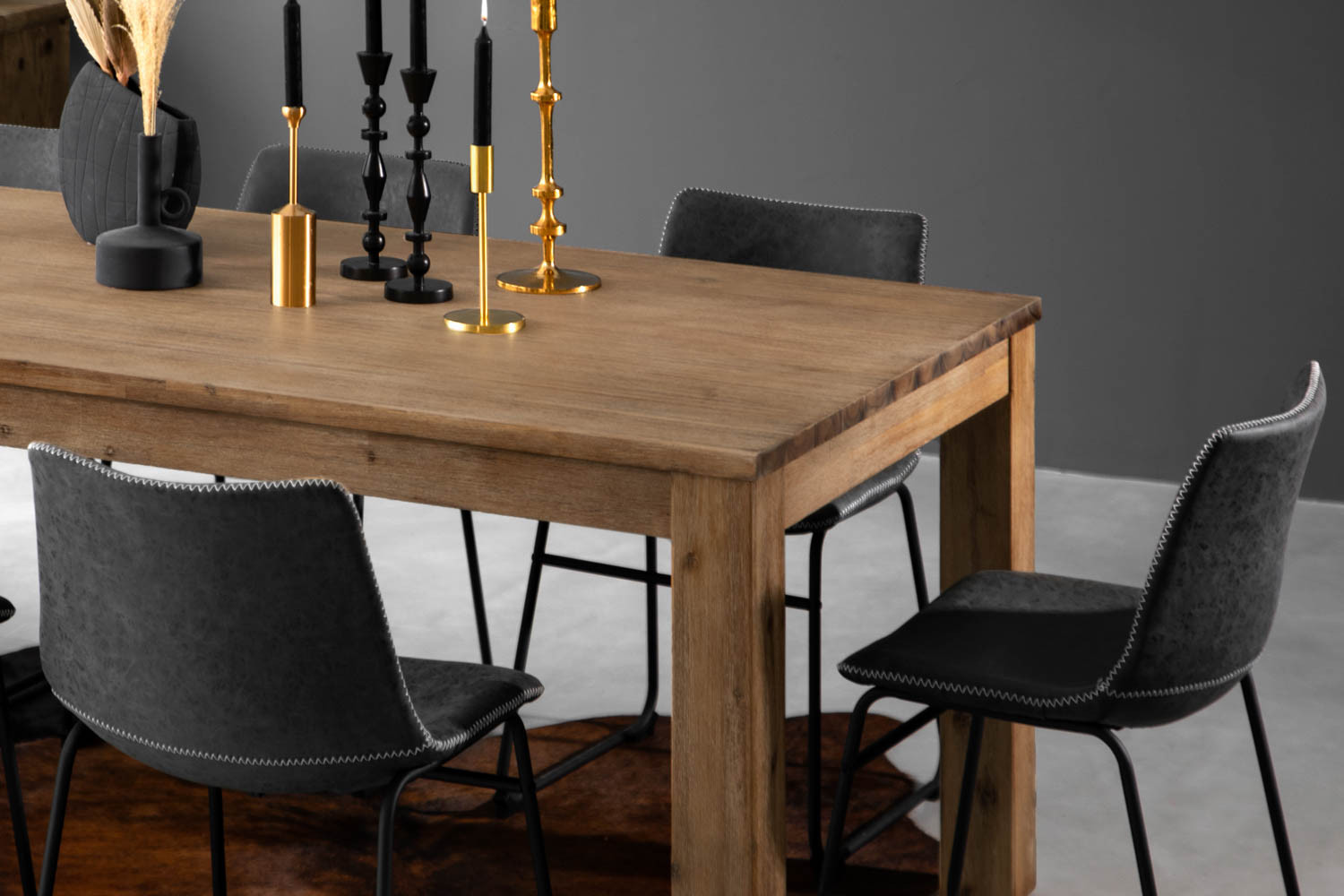 The Vancouver halo Dining Set boasts a robust 2.4m dining table built from solid Acacia wood - a high-density hardwood known for its durability – which is sure to remain the centre of your dining space for decades to come. Wire brushing gives this piece a beautifully natural, slightly rustic finish.
