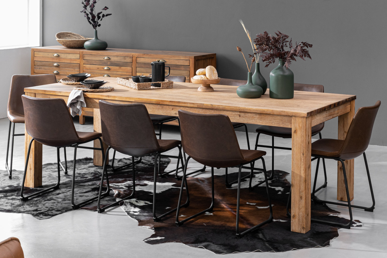 Built from solid Acacia wood, a high-density hardwood known for its durability, the Vancouver dining table promises to remain the centre of your dining space for decades to come. The wire brush technique works beautifully to bring out the unique grain of this wood while giving it a slightly weathered look that will hide any accidental scratches.