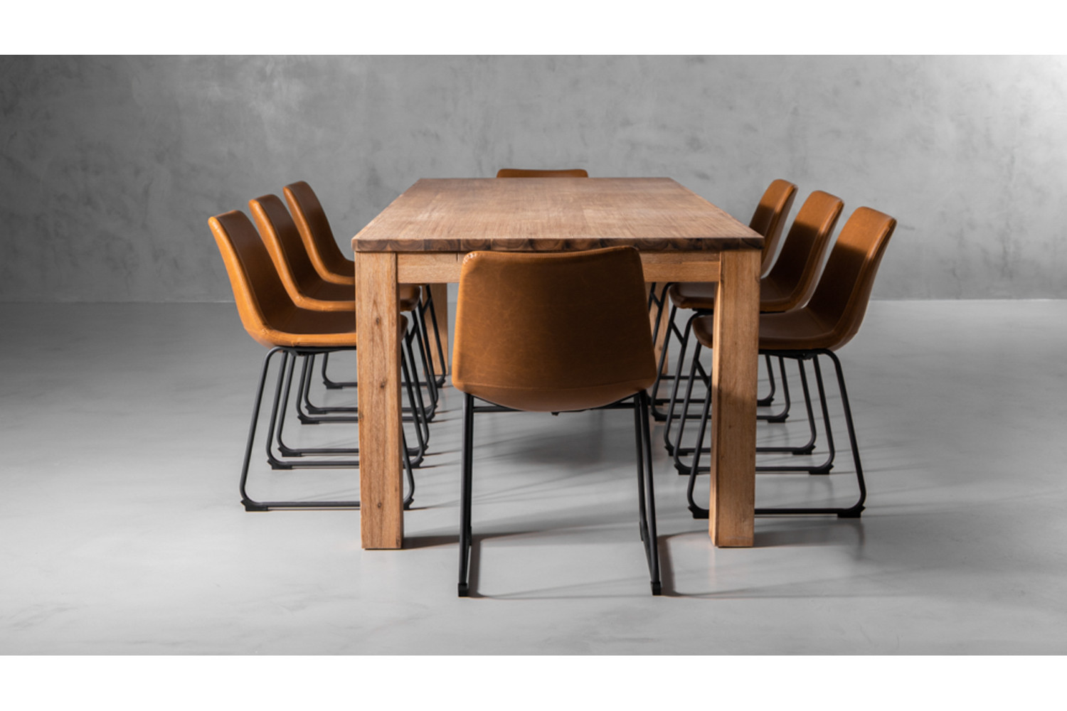Built from solid Acacia wood, a high-density hardwood known for its durability, the Vancouver dining table promises to remain the centre of your dining space for decades to come. The wire brush technique works beautifully to bring out the unique grain of this wood while giving it a slightly weathered look that will hide any accidental scratches.