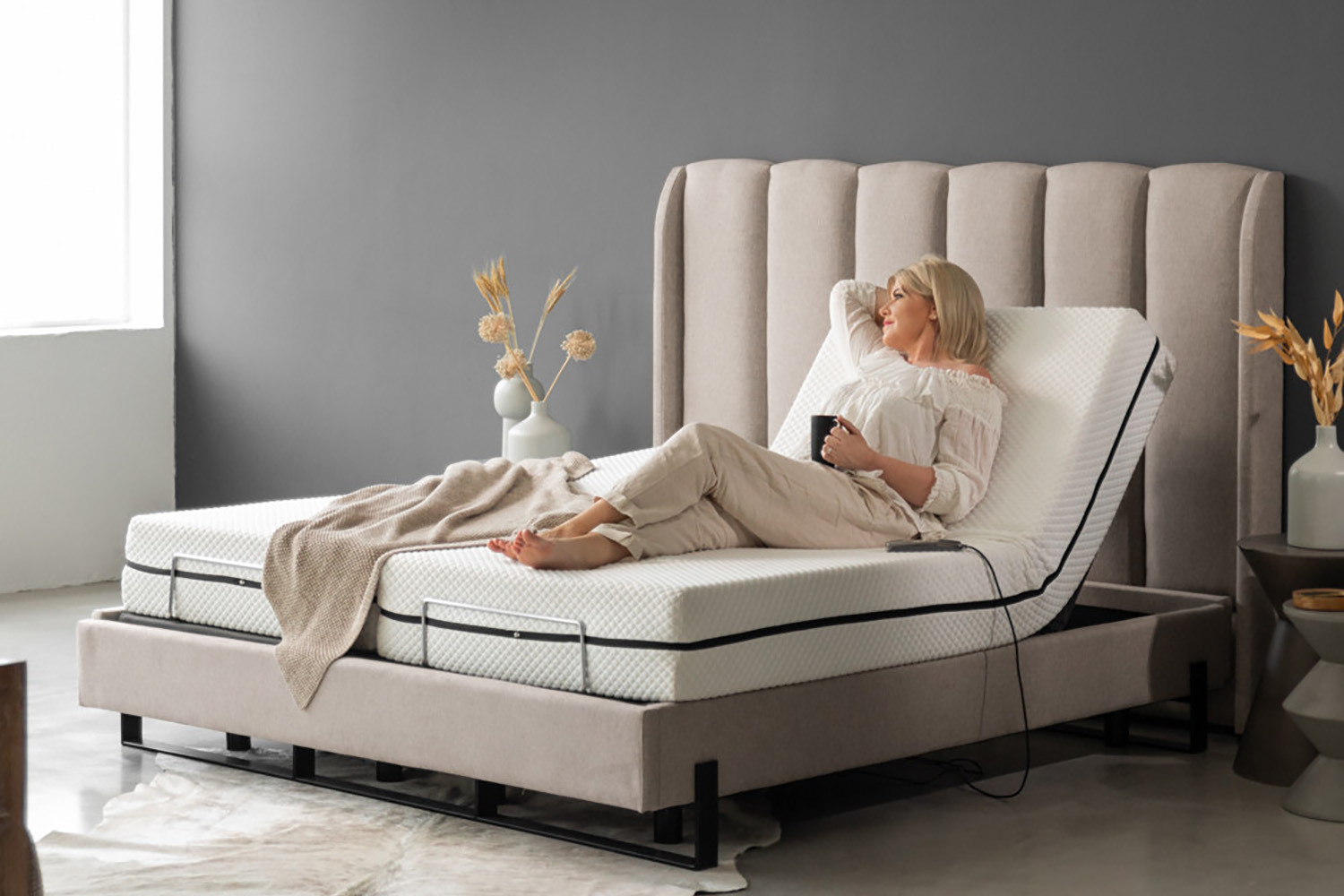 Rejuvenate your sleep with the Adjustable Bed featuring independent head and foot movement that allows you to seamlessly transition positions to suit your needs. Whether you are watching your favourite show, working or sleeping, this transformative bed is the ideal system to suit your lifestyle. This SlumberFlex bed includes a King XL Cazana Bed Base paired with a Corina Headboard.