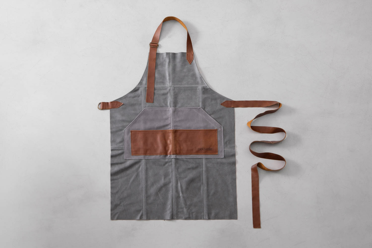 Take your kitchen hobbies to the next level with high-quality full grain leather aprons from Nouvelle. This laser branded apron features practical elements to conveniently store all your cooking accessories.