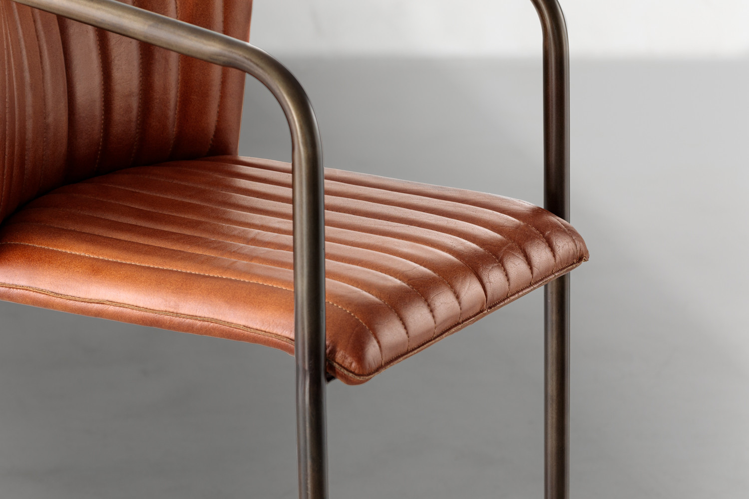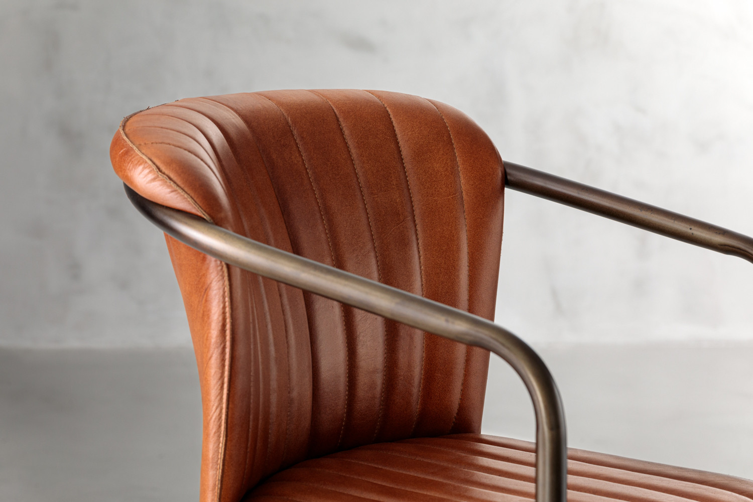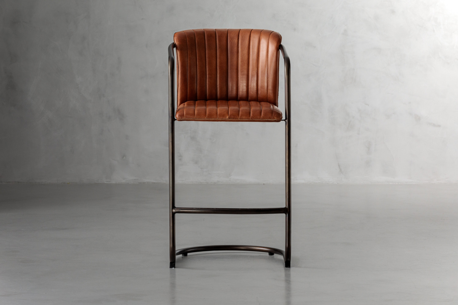 Elevate your entertainment area’s style and ambiance with the Arizona Leather Tall Bar Chair, a symbol of luxury with its rich full-grain leather upholstery. The sleek lines, comfortable armrests, and sturdy metal frame reflect an aesthetic of refined taste and enduring quality.