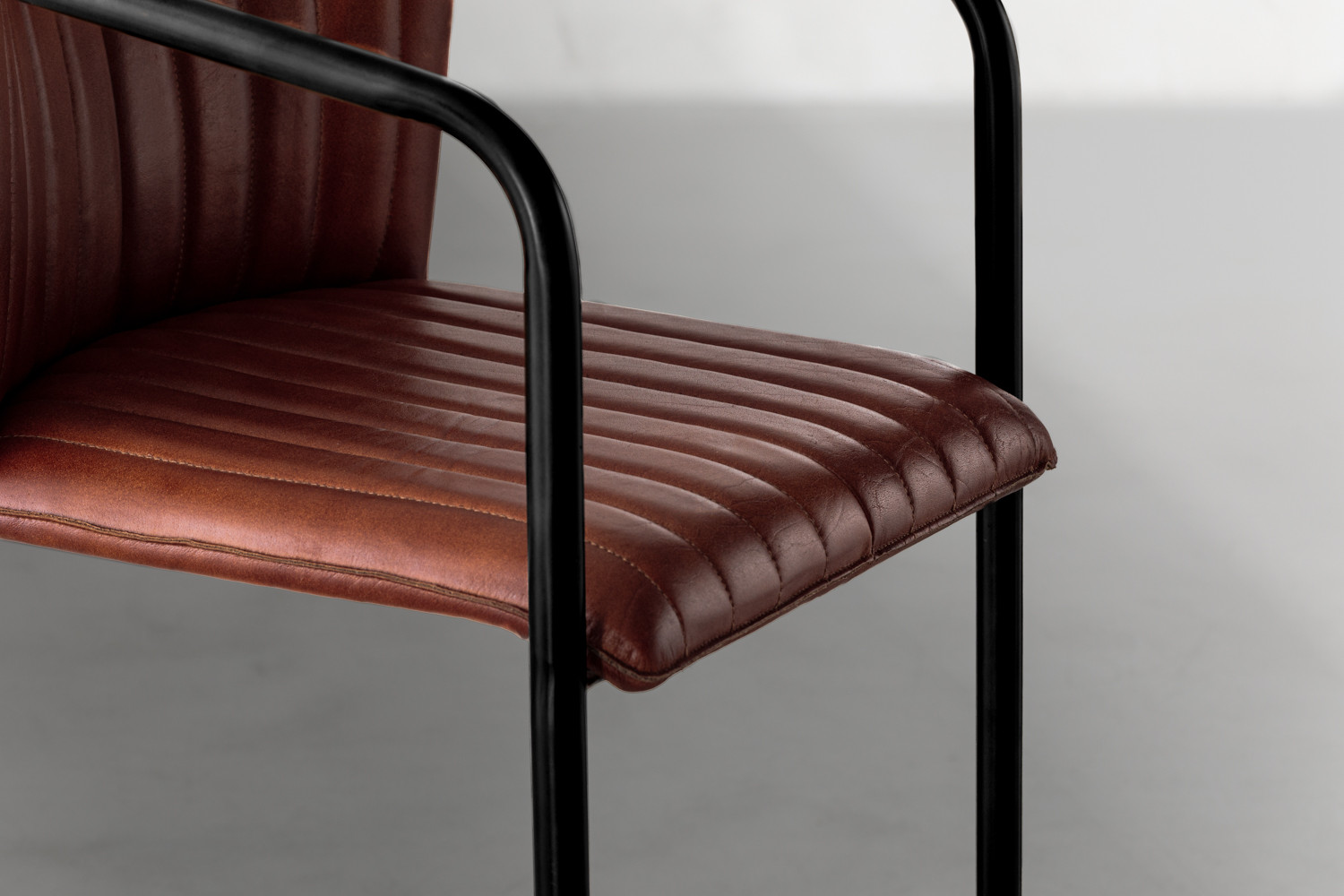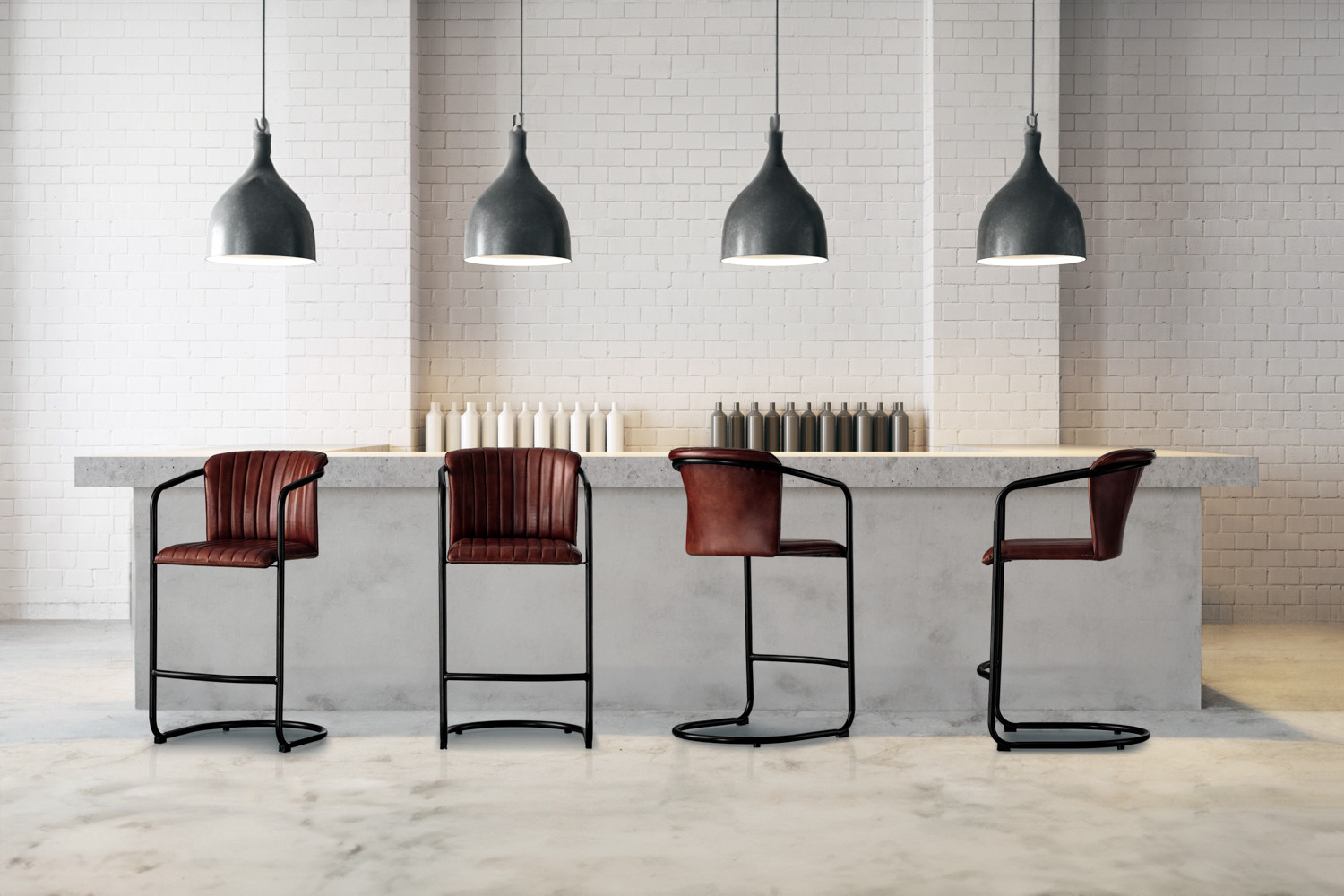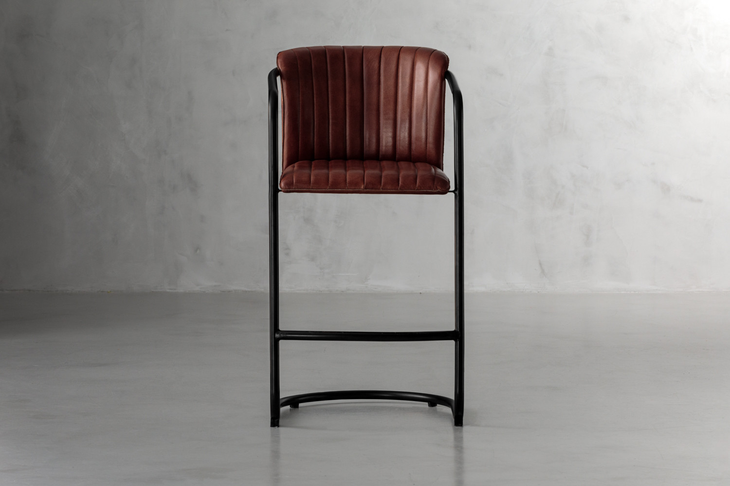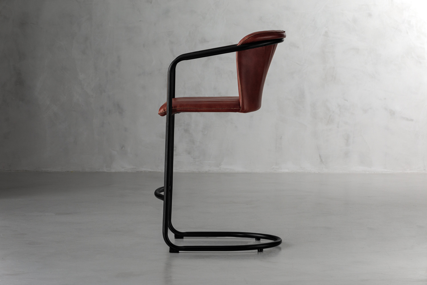 Elevate your entertainment area’s style and ambiance with the Arizona Leather Tall Bar Chair, a symbol of luxury with its rich full grain leather upholstery. The sleek lines, comfortable armrests, and sturdy metal frame reflect an aesthetic of refined taste and enduring quality.