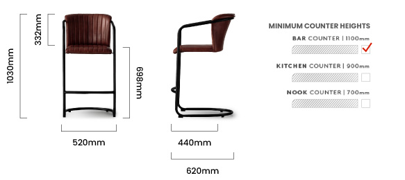 520mm (L) X 620mm (W) X 1030mm (H) | Seat Height - 698mm