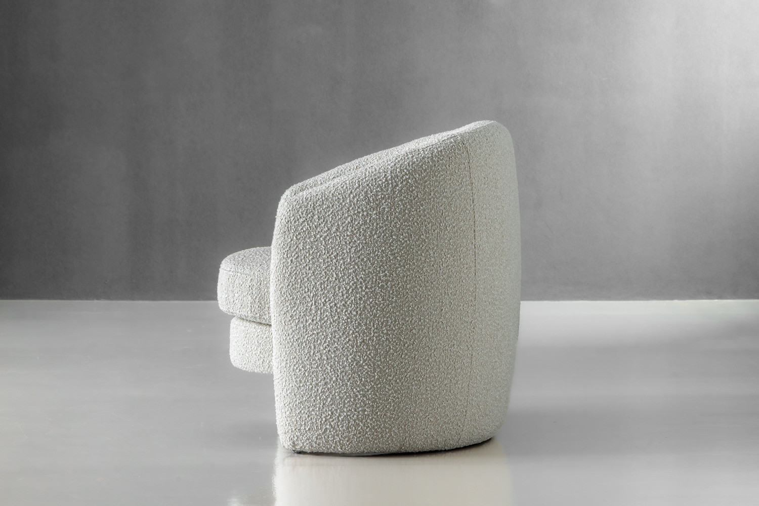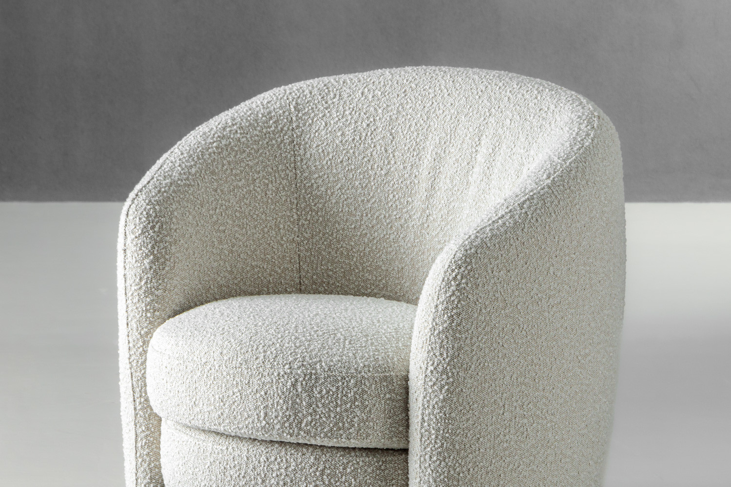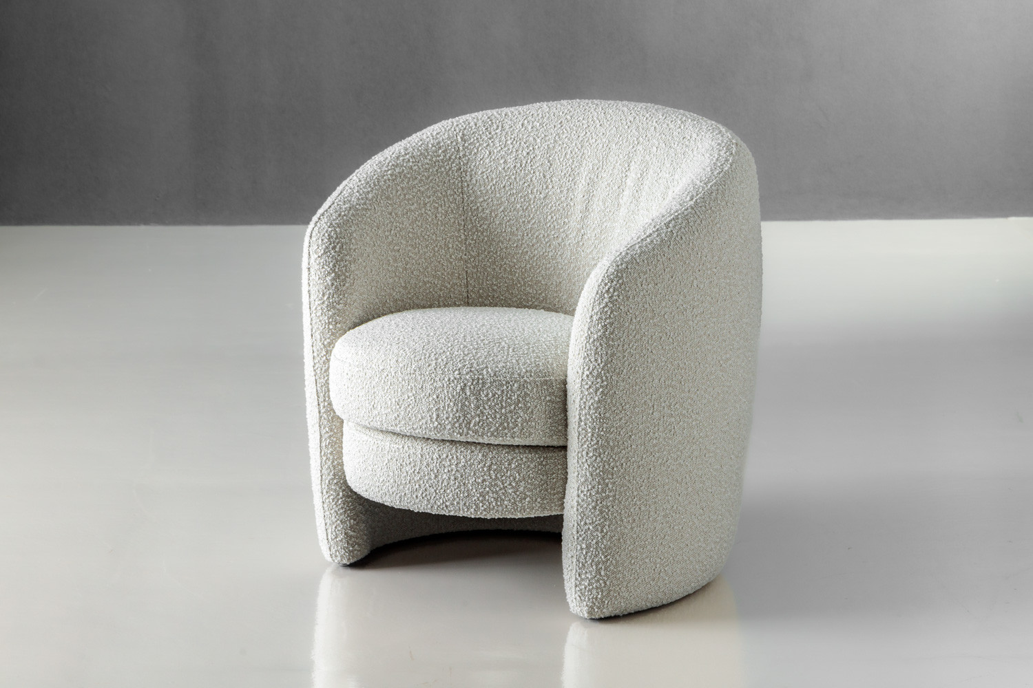 Step into the world of post-modern luxury with the Addison Armchair, a truly iconic piece designed to make a bold statement in any living space. Crafted with plush polyester boucle fabric, the chair’s unique cylindrical silhouette offers both comfort and a cutting-edge aesthetic. The soft, tactile texture of the boucle fabric adds an inviting layer of warmth, making this armchair the perfect spot for relaxing, reading, or enjoying a conversation.