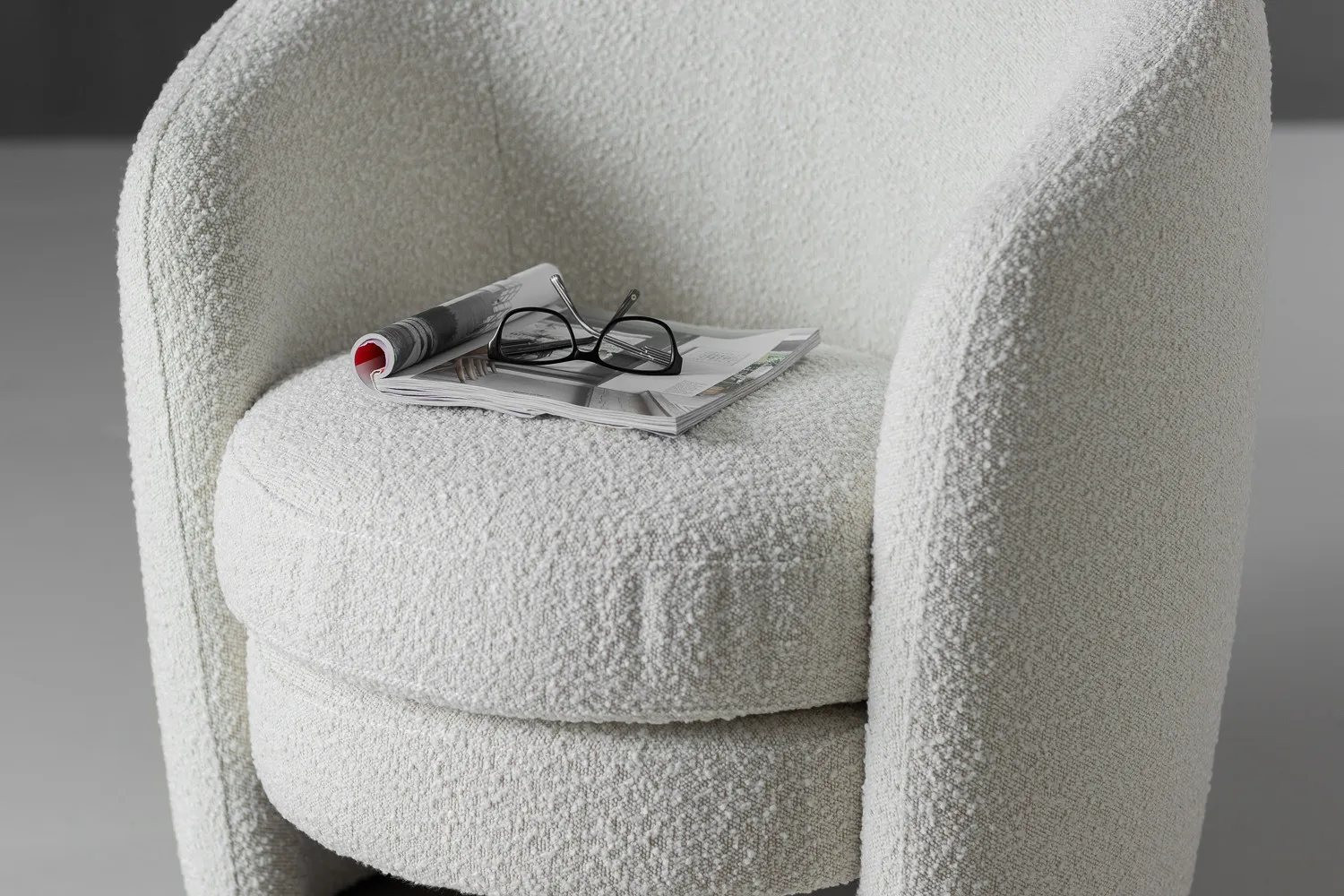 The Addison Armchair is the perfect blend of post-modern design and luxurious comfort, making it a striking focal point for any living room. Upholstered in soft polyester boucle fabric, this armchair’s bold, cylindrical silhouette creates an iconic statement. The plush texture of the boucle fabric invites you to relax in style, while the chair’s sculptural design adds a unique and contemporary touch to your space. Whether used as an accent piece or part of a larger seating arrangement, the Addison Armchair offers both comfort and visual impact.
