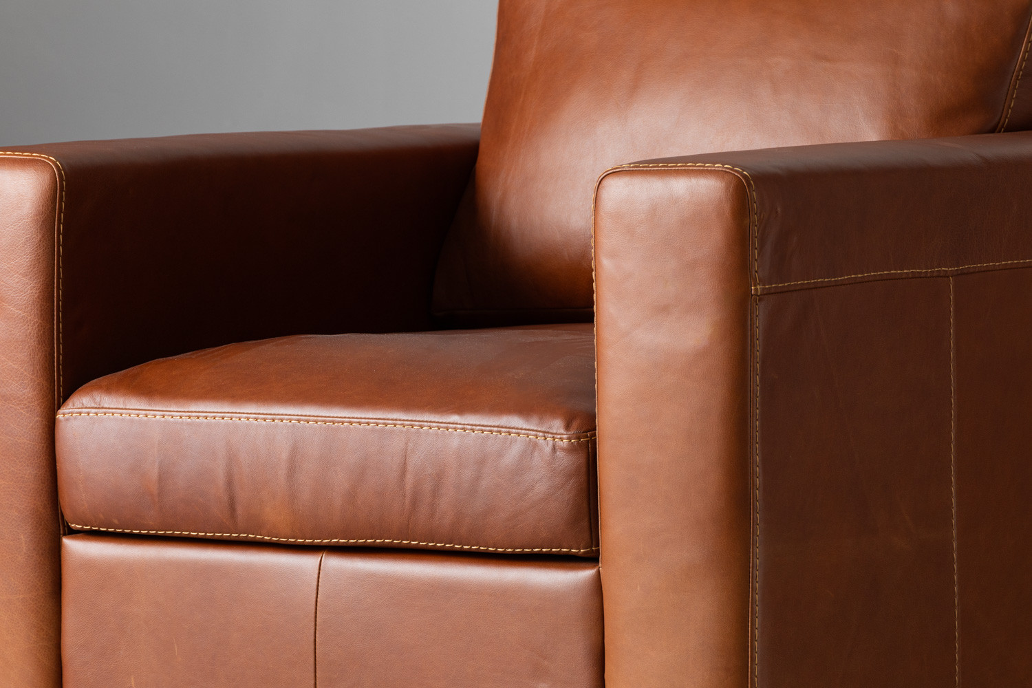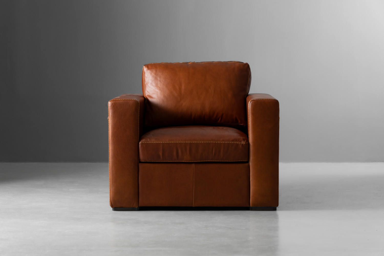 The Archer's premium leather exterior, plush feather cushioning and attention to detail makes this prestigious couch a status symbol in your home. Featuring full grain leather, with composite duck feather inners and exposed stitching, this generous armchair elevates your living space to a new level of luxury.