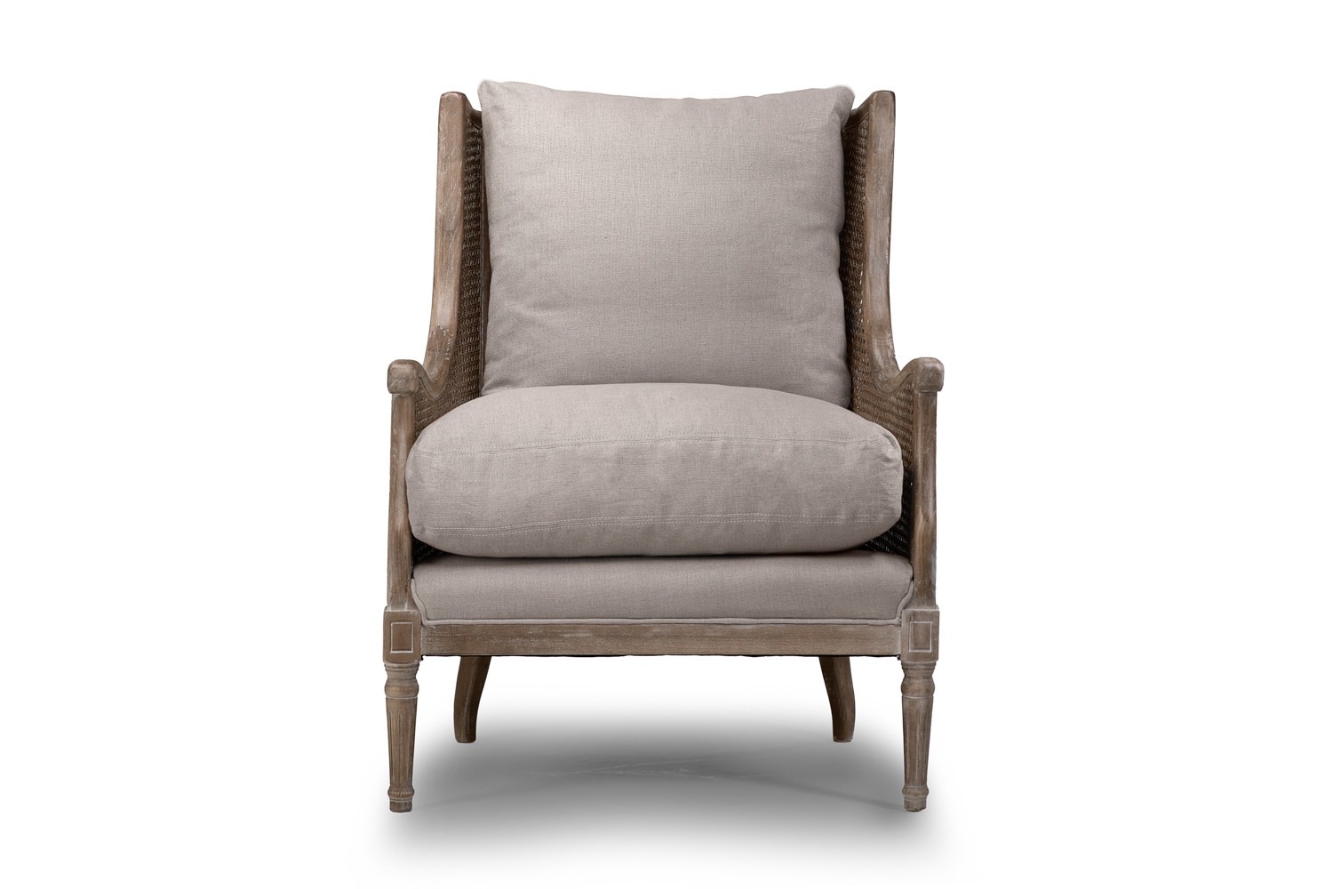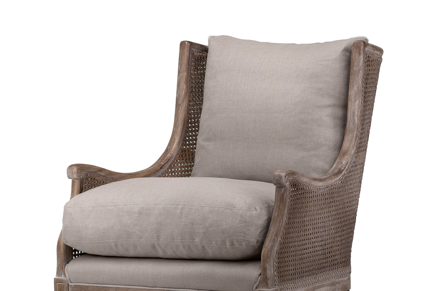 With its brushed Ash wood frame, hand-woven rattan and cool natural linen upholstery, the Belden blends inviting comfort and laid-back class.