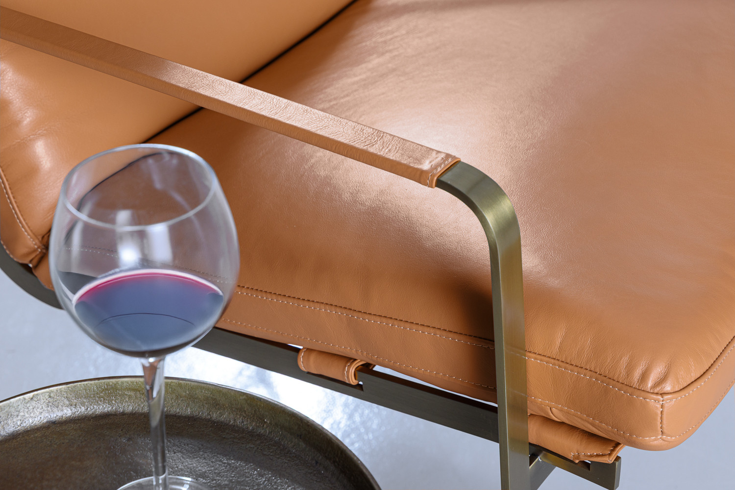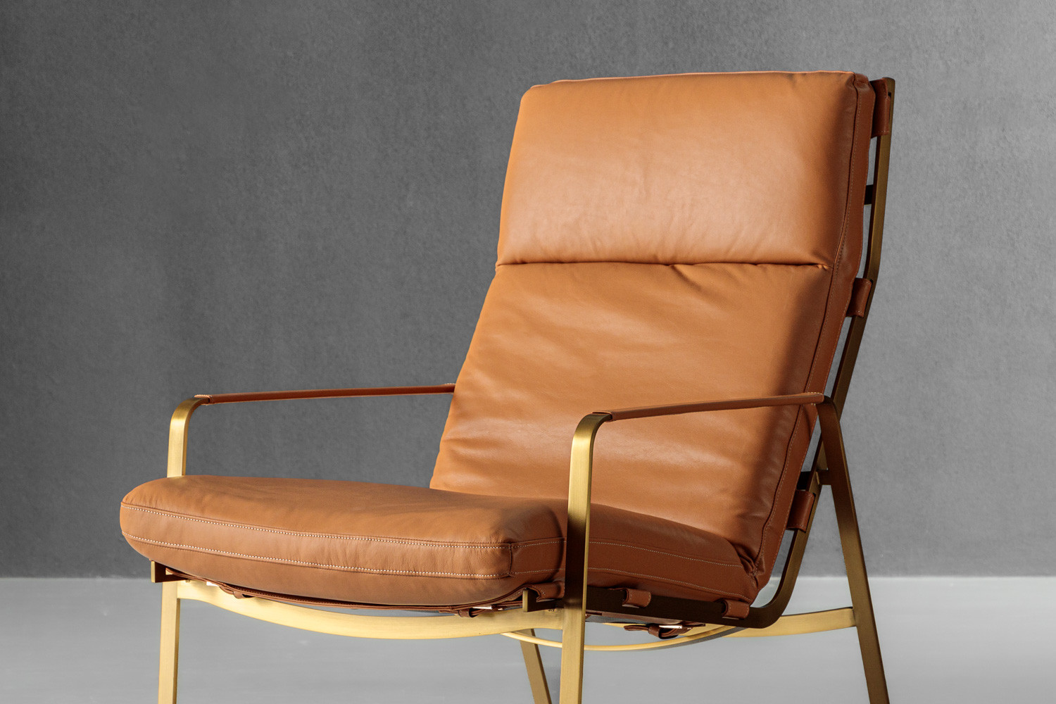 One of the defining features of the Cairo Armchair is its distinctive buckle strap details, which add both style and durability to the design. These straps, set against the armchair’s metallic frame, provide a unique contrast that elevates the overall aesthetic. The armchair's rich leather tones are paired with metallic hues, creating a dramatic and eye-catching focal point in any room.