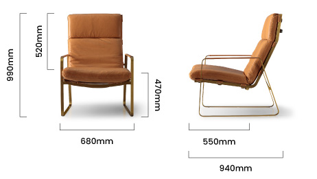 The Cairo Leather Armchair is more than just a seat—it's a bold design statement that transforms any space. Crafted from luxurious top-grain leather, this armchair offers a sleek, polished appearance with a rich texture that enhances its contemporary appeal. The supple leather is perfectly complemented by a striking mild steel frame, adding a touch of industrial chic to your living room.